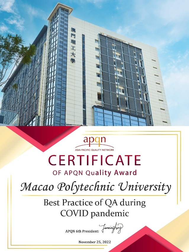香港新聞網12月14日電 澳門理工大學14日公佈,在新加坡舉行的2022年亞太地區教育質量保障組織(Asia-Pacific Quality Network, APQN)年度大會上,澳門理工大學榮獲該組織頒發的“亞太地區教育質量獎”(APQN Quality Awards)之“新冠肺炎大流行時期教學質量保證最佳實踐”(Best Practice of QA during COVID pandemic),是澳門唯一獲得“亞太地區教育質量獎”的高等學府。