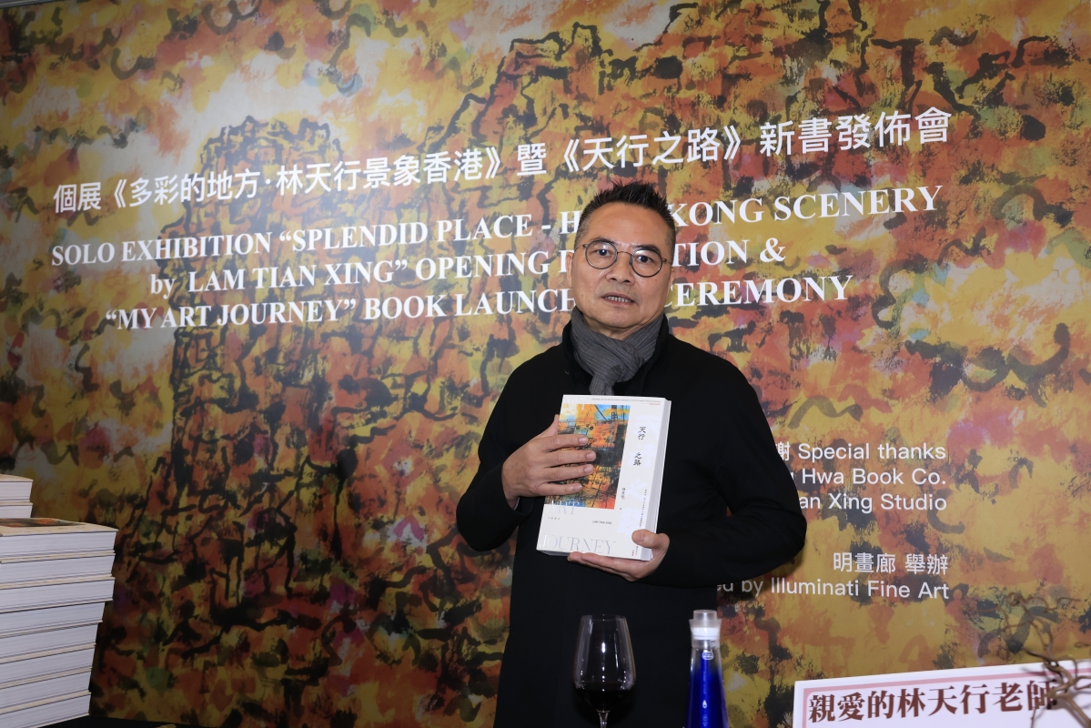 香港新聞網12月16日電(記者 曹文毓)12月16日,香港美協主席林天行在中環明畫廊舉辦個展《多彩的地方・林天行景象香港》開幕酒會以及《天行之路》新書發佈會。《多彩的地方・林天行景象香港》將於12月17日起在香港明畫廊開展,展出40件林天行於2022年創作的全新香港景象系列的水墨作品。 林天行曾在北京、香港、紐約、柏林、不來梅、米蘭、新加坡、台灣、首爾等地舉辦過個人畫展,其作品經常入選百年中國畫展、全國美展、深圳國際水墨雙年展等,並在世界各地參與聯展。