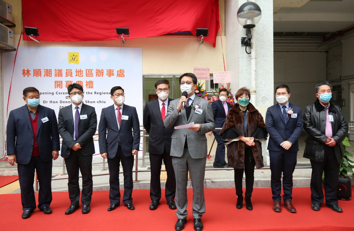 候任全國人大代表、香港島各界聯合會常務副理事長兼秘書長朱立威在開幕儀式上致辭 候任全國人大代表、香港島各界聯合會常務副理事長兼秘書長、南區地委會主席朱立威也在開幕儀式上致辭;他表示,林順潮在全國人大和立法會兩個平臺都為國家和香港的醫療發展獻言獻策,推動兩地醫療融合,投身大灣區建設。林順潮在利東邨開設辦事處會積極推動南區和港島區民政事務發展,可喜可賀。