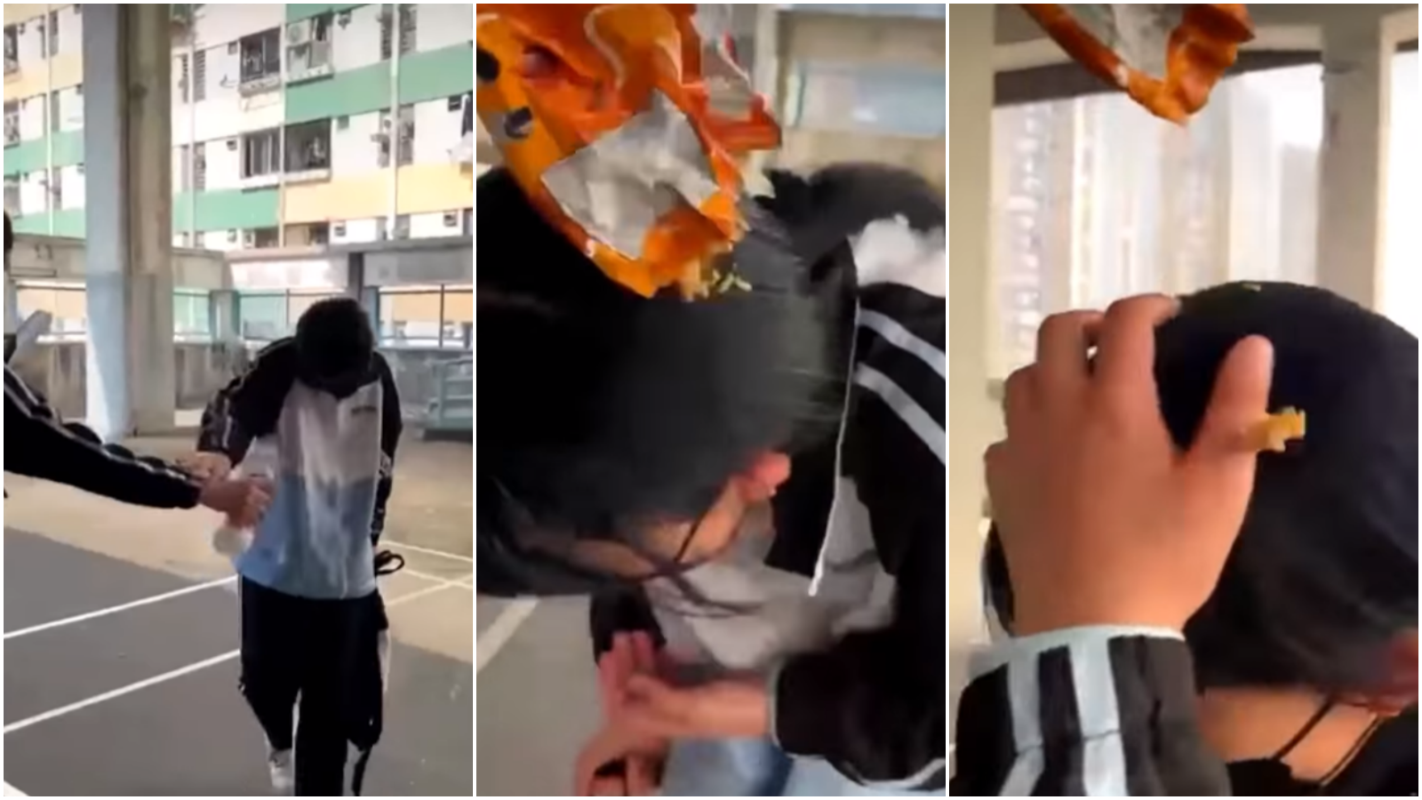 有網民近日在社交網站Facebook群組“南區之友,島隅之情”上傳一段約59秒的影片,影片中一名紮馬尾、身穿學校運動服的女生在地上拾起書包,正準備離開之際,被至少3名女同學包圍並呼喝,期間有人突將手上的零食碎倒在受害女童的頭上,女童隨即閃避並以手保護自己,惟欺凌者未有停止,更變本加厲,舉起飲料淋向女童頭上,並不斷出言嘲笑“幫你加點裝飾”、“好味道”、“為什麼不反抗?”、“你吃掉它(零食碎)呀”。女童四處閃躲,惟欺凌者步步進逼,更將零食袋拋向女童身上,再將飲料淋潑女童身上,女童無從反抗,委屈落淚。據悉,受欺凌的女童與欺凌者同為一間小學的小五學生。 事件引起大批網民關注,留言怒斥欺凌者過分,“報警處理。欺凌不可以容忍”“已經構成普通襲擊罪,受害人可以考慮報警”“這只是冰山一角,平時沒有拍下影片那些呢!欺凌不會只有一次半次!學校要處理好才行!”“要有重的懲罰才會令他們很害怕及承擔後果!”“最好將她們帶去教導所,獨自關黑房一星期,讓她明白做錯事要承受後果””“欺凌事件,一單都嫌多,希望能盡快解決,並對受害人及公眾有個妥善交代”“小學已經這樣欺負人,到中學會怎樣?”“一定要報警抓人,太過份!那麼小已經這樣(過份),長大後那是不是要殺人?”“應該要反抗啊!”“從小習武好重要”。 教育局發言人昨日(18日)表示,已聯絡有關學校了解事件,強調當局一向採取“零容忍”政策,絕不接受任何形式或任何原因的欺凌行為。據悉,該校正按校本機制嚴肅調查事件,並會根據調查所得,作出適切跟進。教育局亦會繼續與學校聯絡,了解調查的進展。 涉事小學今日回應傳媒查詢時表示,已經報警處理,其他問題不方便回應。(完) 【編輯:孟宜君】