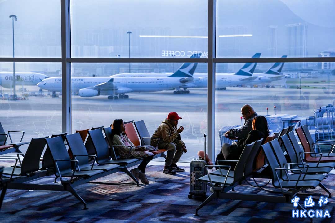 12月14日,國泰航空公布,11月載客量約52.7萬人次,按年急升逾6.5倍,但較2019年同期跌近80%;日均載客由10月約1.3萬人次,升至上月約1.76萬人次。(香港中通社記者 曹文毓攝)
