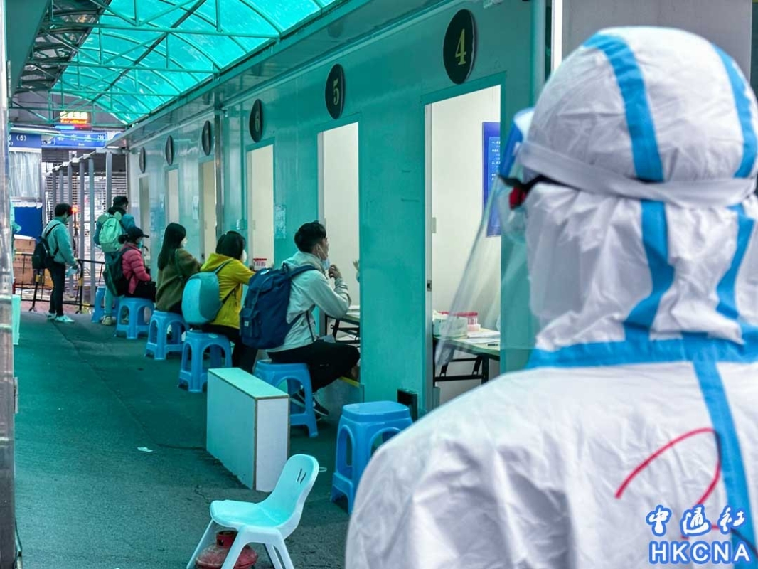 12月15日,香港市民在深圳灣口岸入境深圳後進行核酸檢測。當日,深圳供港人入境檢疫的“健康驛站”名額增至每天2500個。近期,隨著內地陸續調整各項防疫措施,香港與內地何時恢復正常通關備受關注。(香港中通社記者 謝光磊攝)