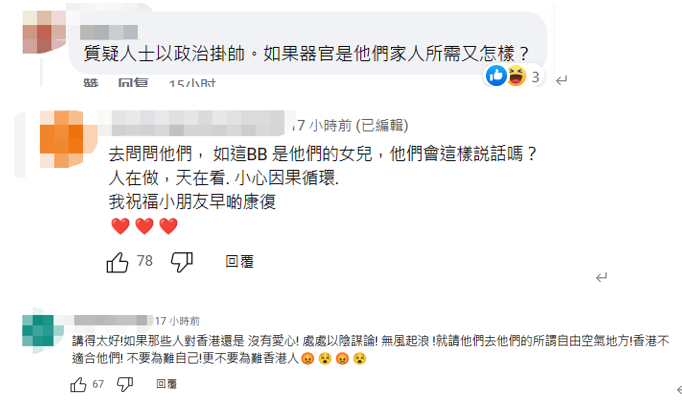 社交媒體截圖 屈穎妍表示,對病者來說,器官庫一定是越大越好,香港只有七百萬人,等一個器官難於登天,如果香港的移植輪候名額能放進內地的器官庫,將會救回更多人命。屈穎妍批評,“香港過去都有接收來自斯里蘭卡捐贈的眼角膜,為什麼對於同胞的大愛、國家的關懷,卻如此狼心回應?” 聽到有人無端質疑內地器官來港移植,香港網友也怒了! “明明是一件好事,都可以被批評,抹黑,這種‘反中’上腦的人真是無藥可醫!”有網友直言,“有關內地的事,‘黃絲’不管事實,只會反對、歧視。” 有網友批評質疑人士“政治掛帥”,試想如果他們自己有親人急需器官移植,他們會這樣說話嗎?