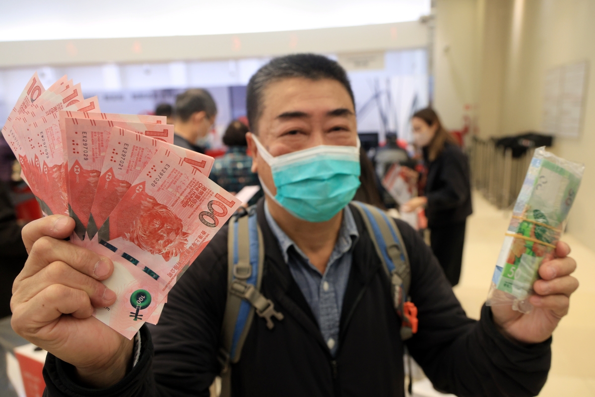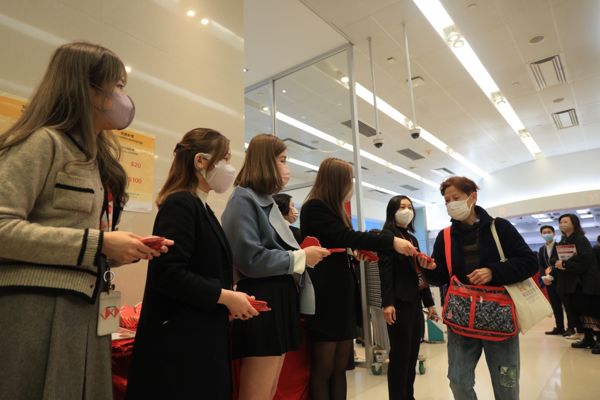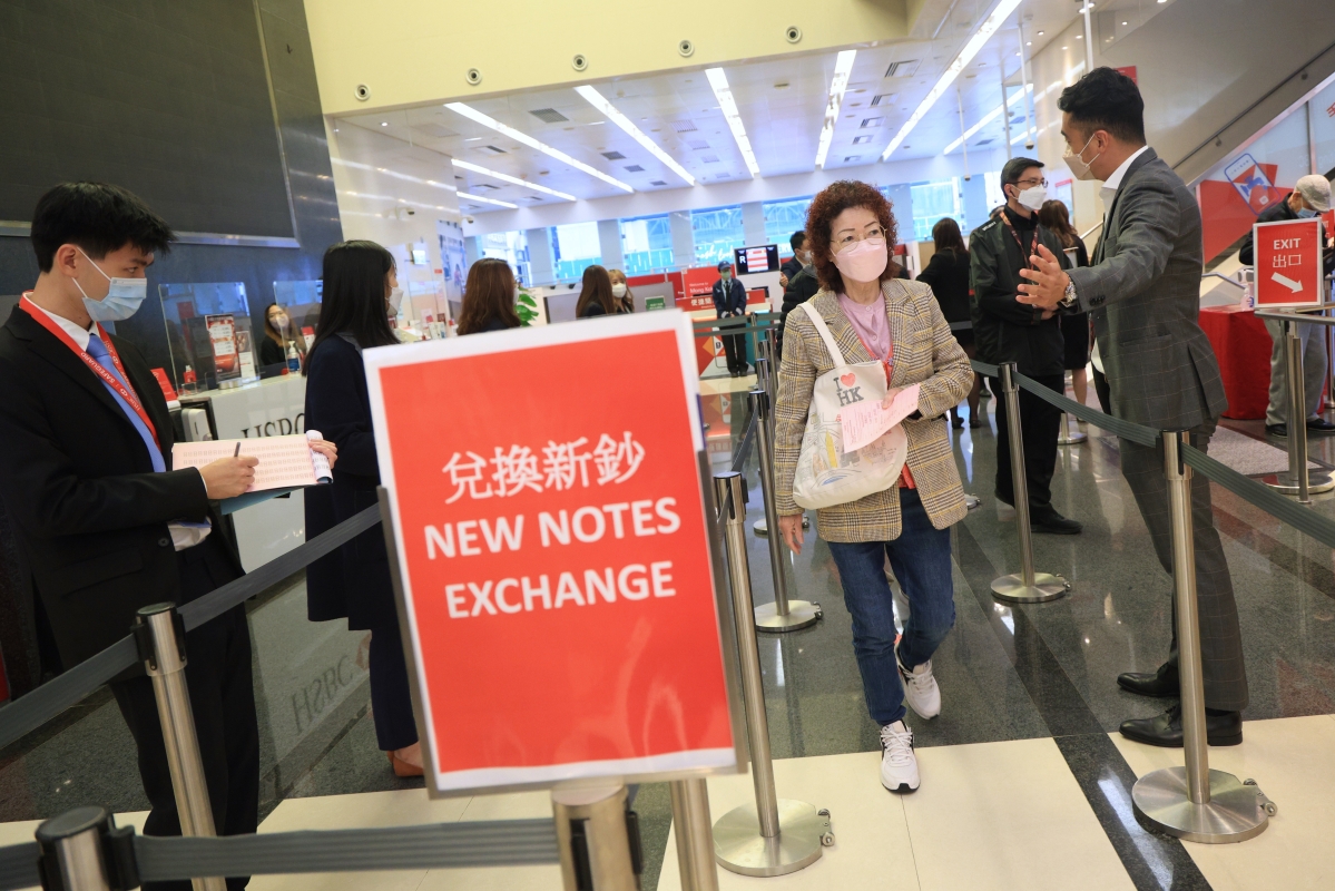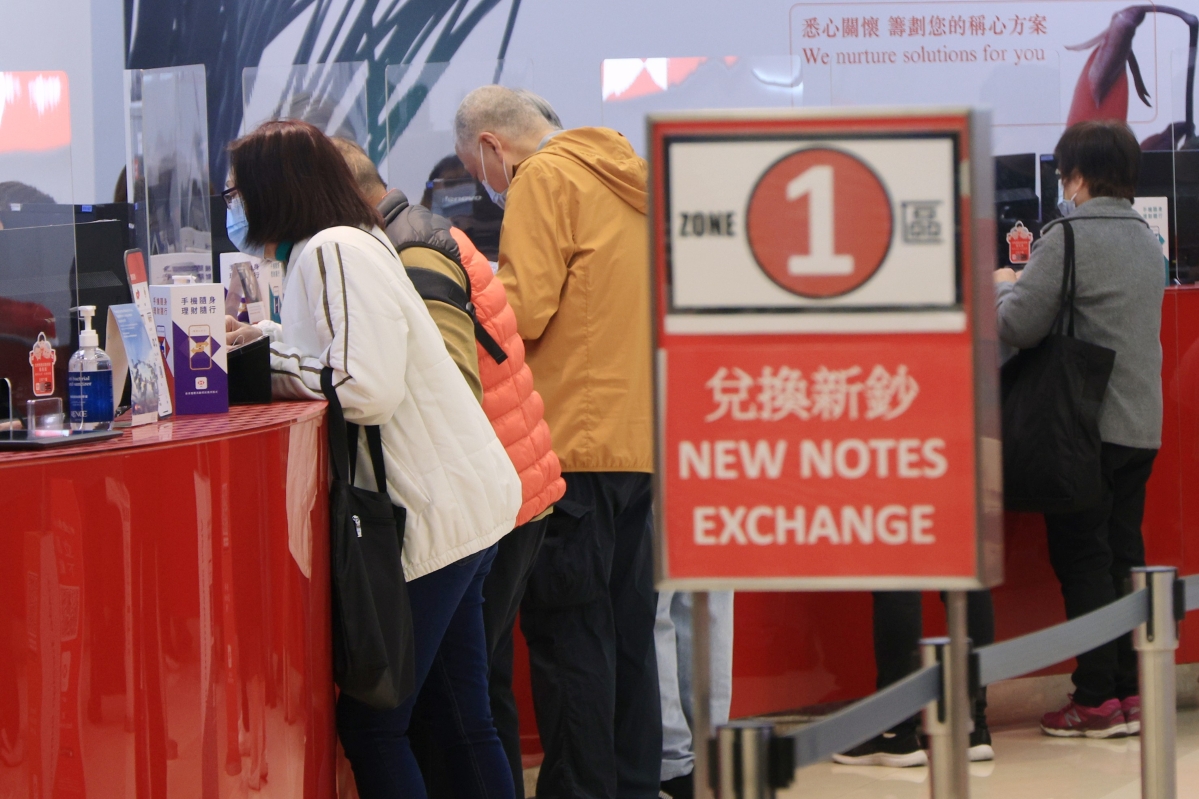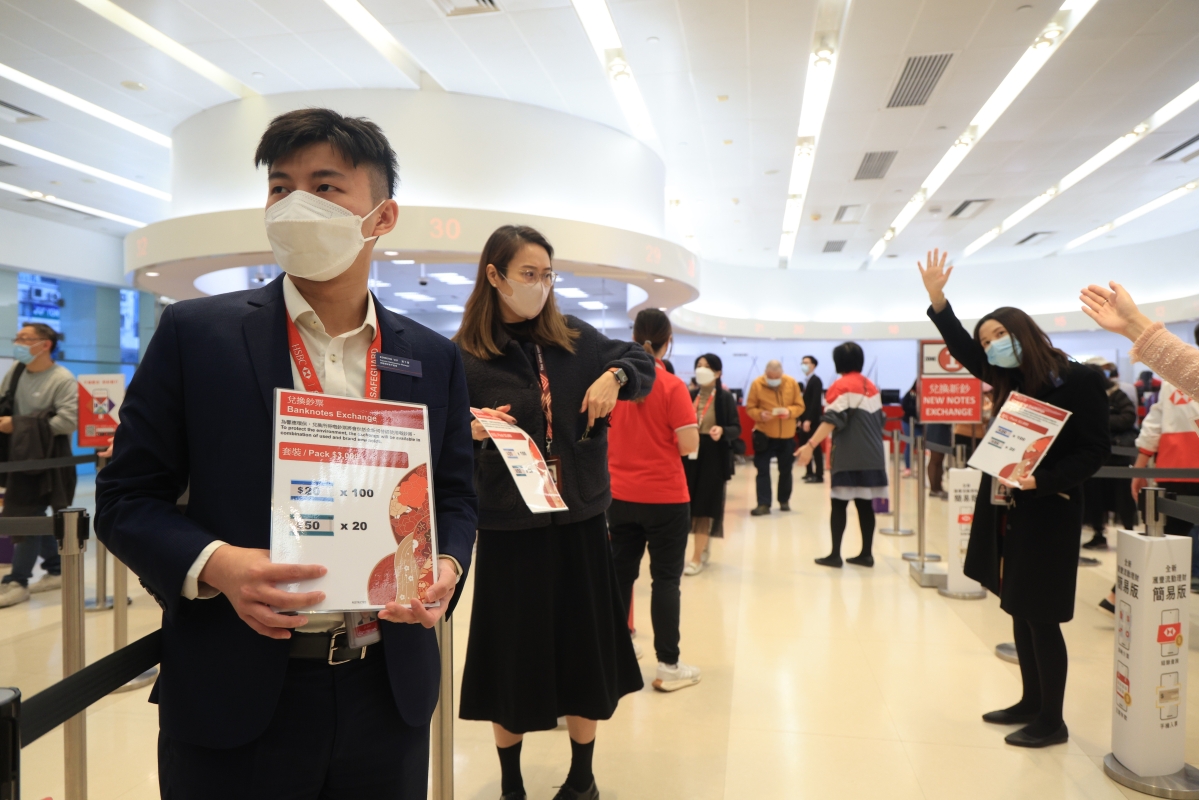 香港新聞網1月5日電(記者 許其皓)1月5日早晨8時許,香港匯豐銀行旺角分行人頭攢動,不少市民一早前來排隊兌換新鈔,迎接農曆新年,在出口處有銀行職員向市民派發"利是"封,現場實施分流措施,並有職員指引,以方便市民換鈔。 農曆新年將至,香港三間發鈔銀行,滙豐、中銀、渣打1月5日起至農曆年三十(1月21日)提供新鈔及“迎新鈔”供市民兌換,並於提供換鈔前三日提早至早上8時開始營業,提早時間專門提供換新鈔服務。市民可直接到銀行分行排隊換領,亦可於網上預約服務。