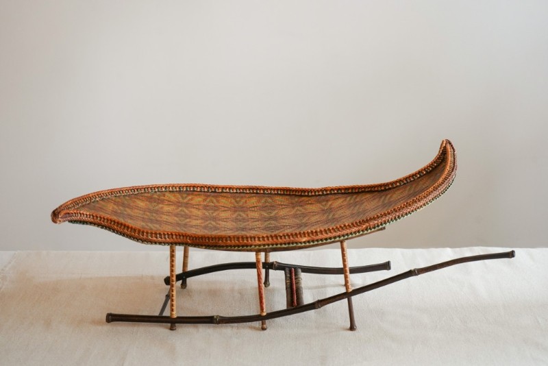 《紅葉》原是劉美儀在京都傳統工藝大學修讀二年級的功課之一。圖源:星島日報 說到《紅葉》,原是她在京都傳統工藝大學修讀二年級的功課之一,作品形狀像一片葉,葉片一端微曲,充滿自然美態。《紅葉》花了約三個月的時間完成,劉美儀稱過程中最難的并非設計,而是竹材的處理。在日本,賣竹材的地方多,若找不到合心意的,她會自行上山揀竹,斬竹、開竹、削竹,一手包辦,雖然花上不少時間,過程卻充滿驚喜。最終劉美儀選擇以‘網袋’密編方式製作,先將竹支染成不同深淺的橙、棕和綠色,再以冷暖色交雜編織。