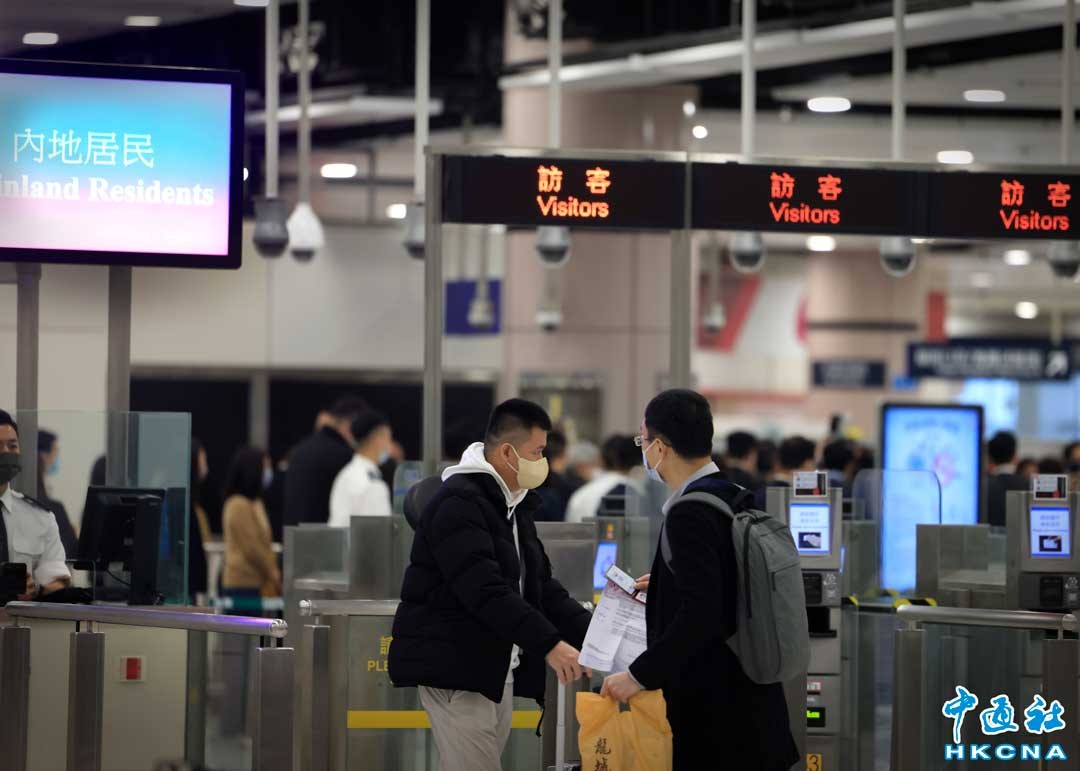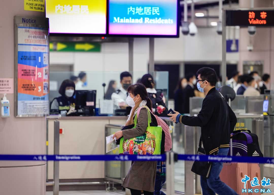 市民在落馬洲口岸通關 (香港中通社記者 曹文毓攝)