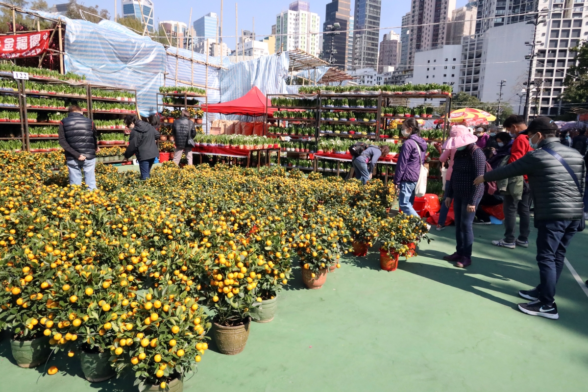 維園年宵市場設175個攤位,吸引了不少市民前來買年花。