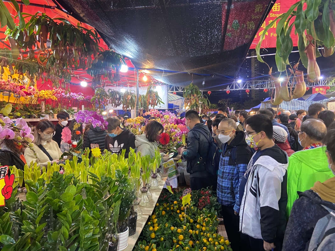 香港新聞網1月21電(記者張海德)農曆新年來臨之際,香港各區年宵市集已水洩不通,新年氣氛濃烈。圖為20日晚,市民於屯門一年宵市場購買年花。隨著疫情放緩,熱鬧非凡的年宵市場回歸港九新界,今年全港設有15個年宵市場,由1月16日至1月22日一連7天舉行。連日來,各區吸引了不少市民前來買年花。年宵花市有桃花、水仙花、蘭花、富貴竹、五代同堂、發財樹等傳統年花,應有盡有,琳瑯滿目。