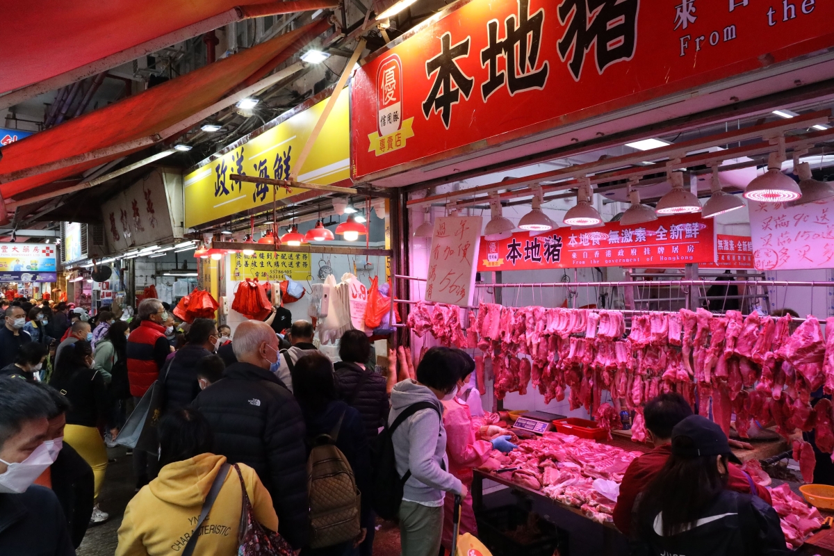 大批街坊市民湧到街市選購新鮮雞鴨魚肉。