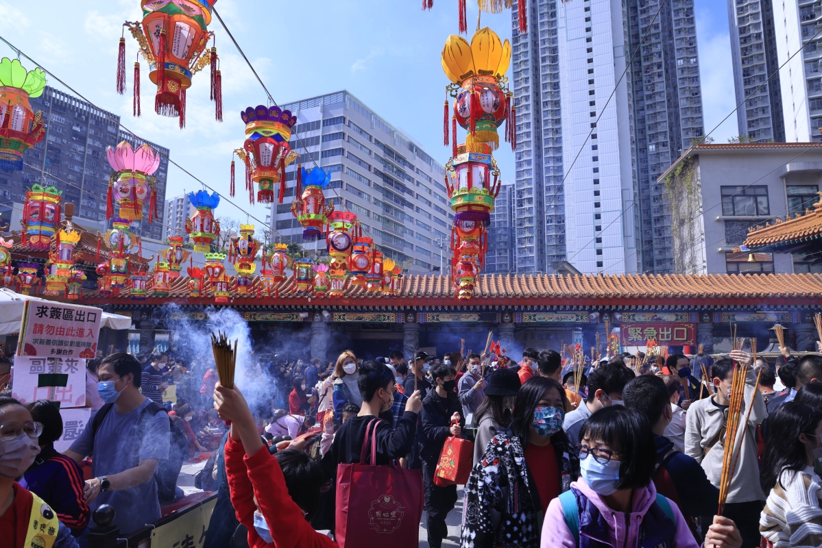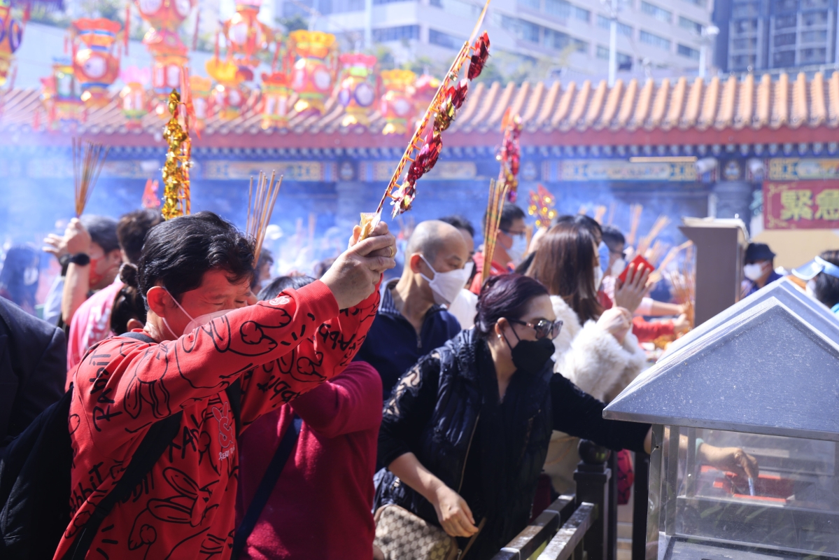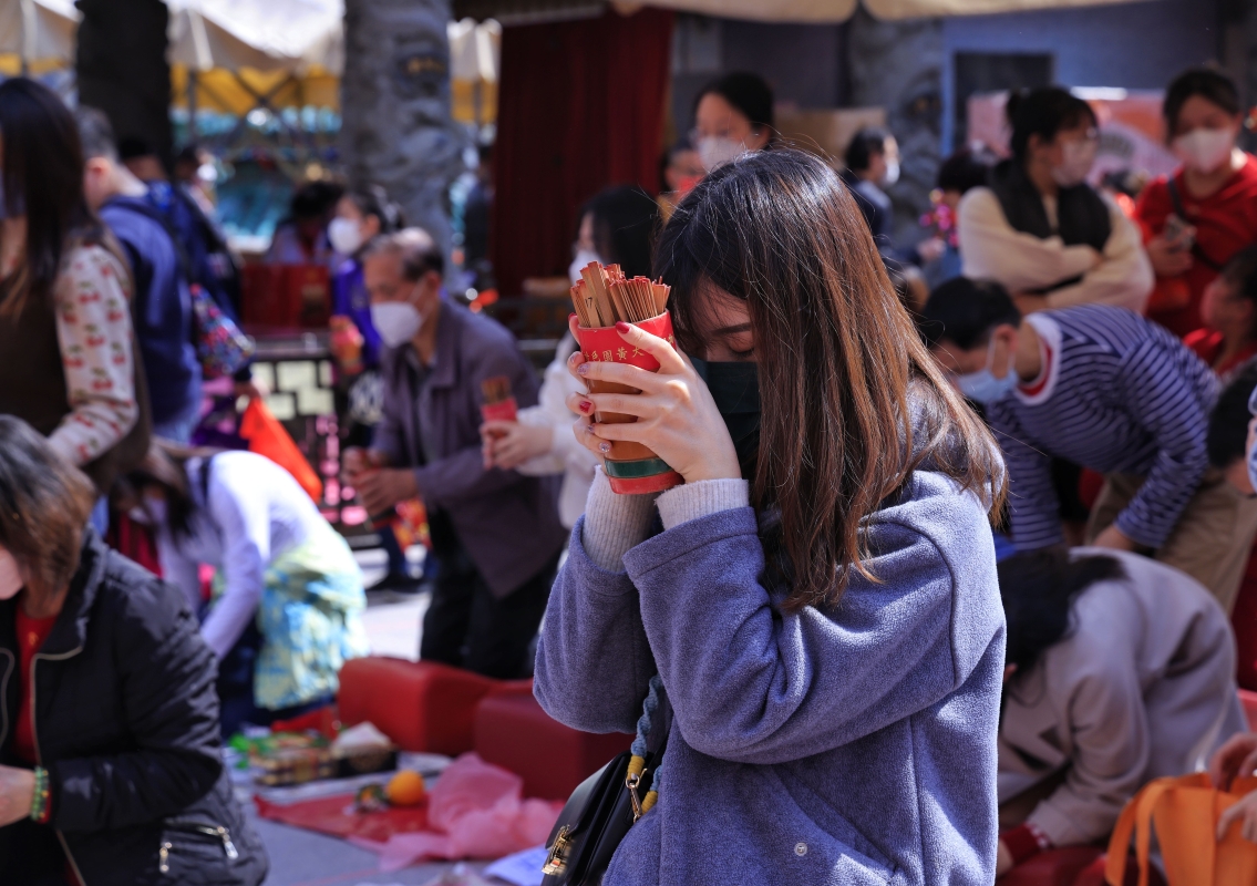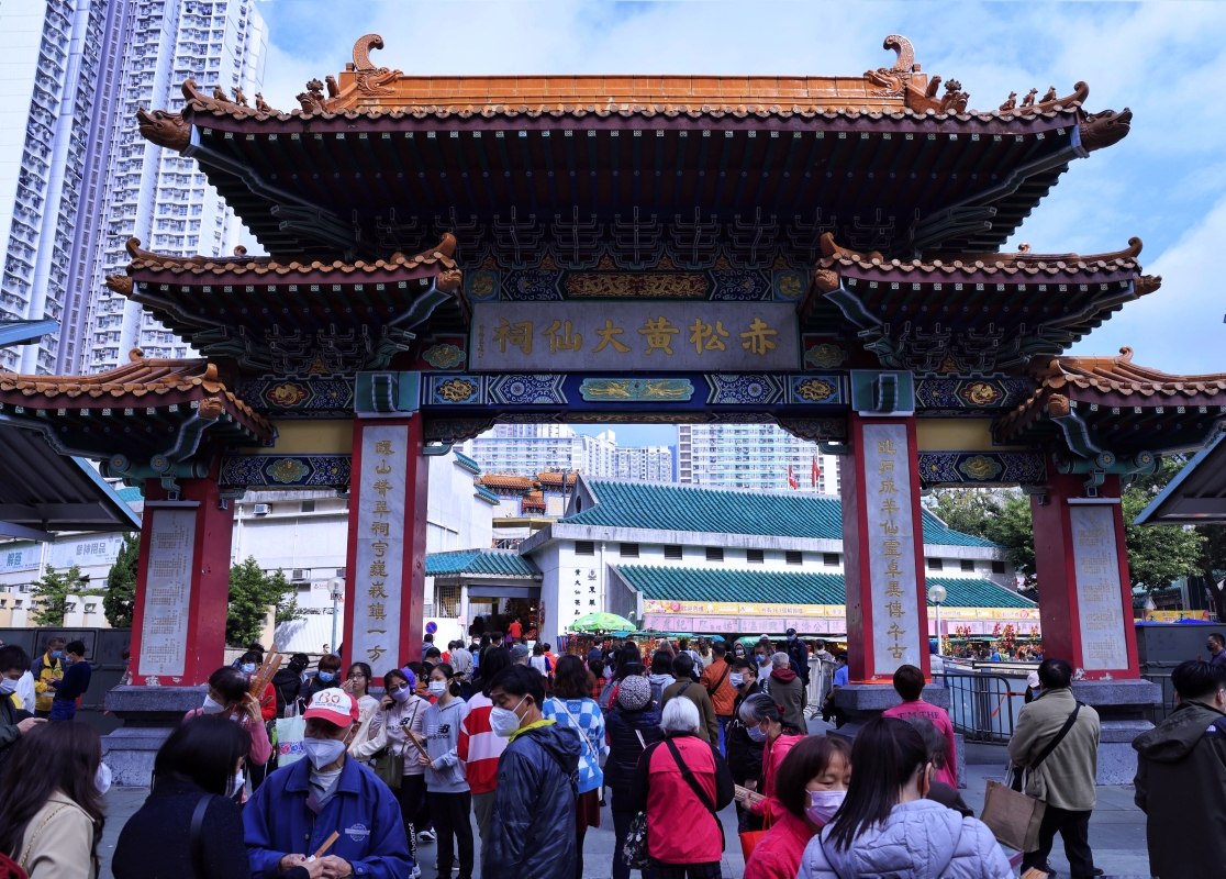 香港新聞網1月22日電(記者 曹文毓) 1月22日農曆大年初一,香港黃大仙祠香火旺盛,不少善信到此上香,祈求神靈護佑,亦為親朋好友送上美好祝願。