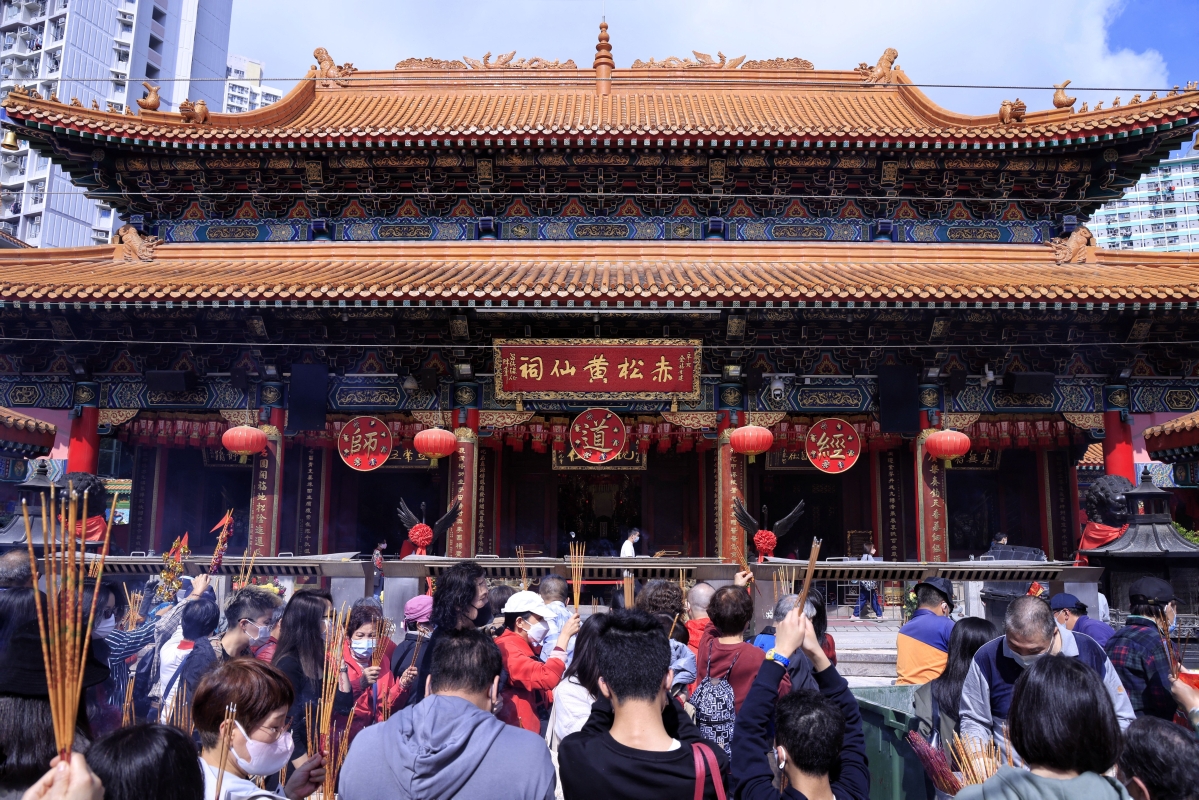 香港黄大仙祠又名啬色园,是香港最著名的庙宇之一。過去兩年,因為疫情影響,黃大仙祠年三十晚不開放予善信上頭炷香。今年疫情減緩,黃大仙祠亦於21日再重新開放讓善信親身到現場上頭炷香。