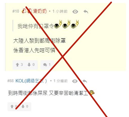 緊接著,不少“黃絲”開始洗版,各種抹黑內地的留言瞬間充斥評論區:“香港淪陷”、“水貨客”、“大陸人到處不戴口罩”等等。仔細觀察抹黑的手法和內容形式,可以發現與多年前香港發生一系列風波中的做法如出一轍!
