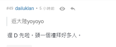 不過,在這些抹黑之中,也有“不和諧”之聲。有人對於能够“返大陸”表達了喜悅之情,還有“手足”提醒晚點再說,現在人多。
