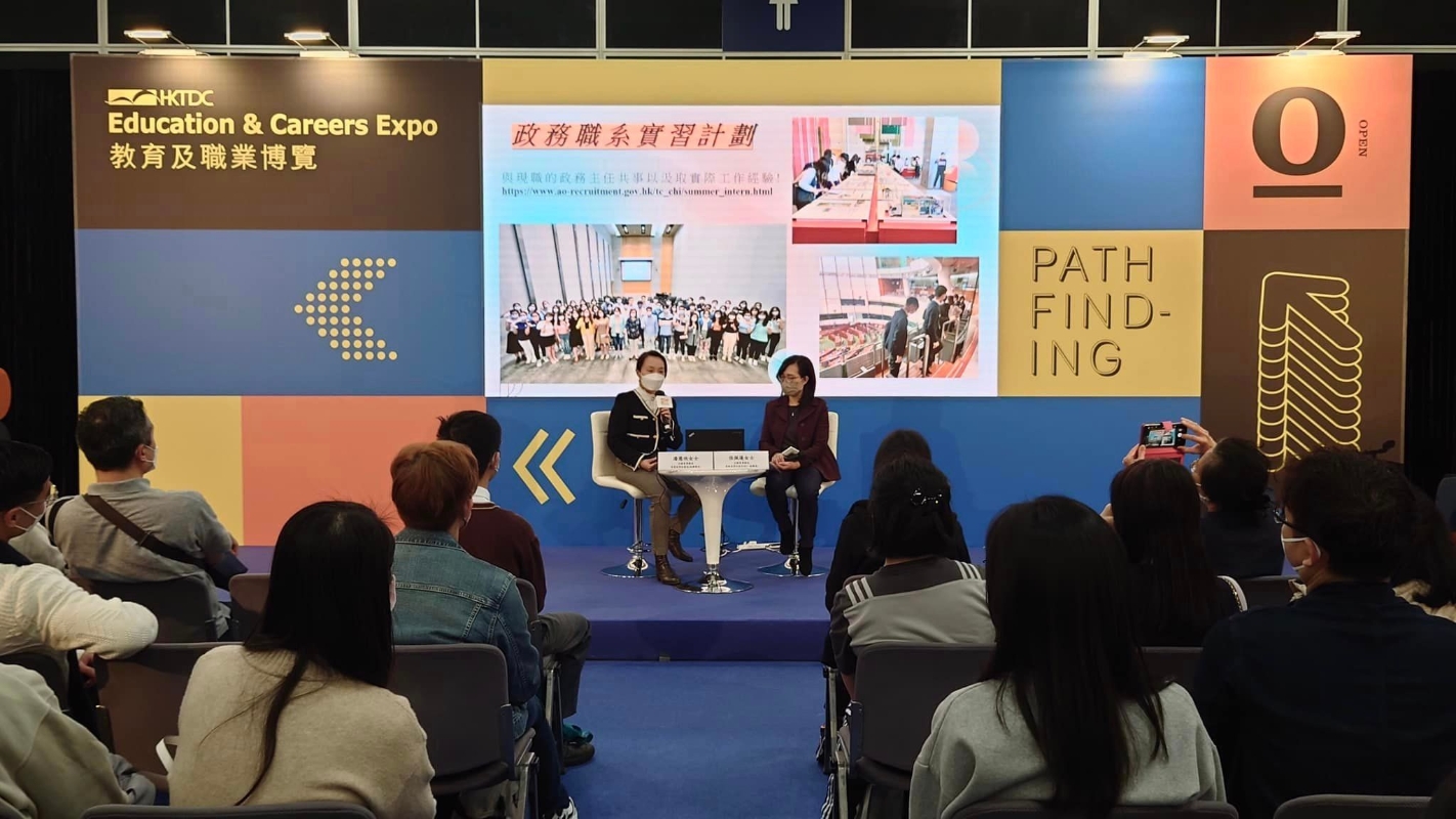 香港新聞網2月3日電 香港特區政府公務員事務局3日於“教育及職業博覽2023”舉辦“認識政務主任和行政主任職系”講座,由公務員事務局首席助理秘書長(政務職系)潘慧欣及高級首席行政主任(一般職系)張佩蓮跟參與者分享政務主任(AO)及行政主任(EO)的求職技巧、實習計劃及事業發展前景。