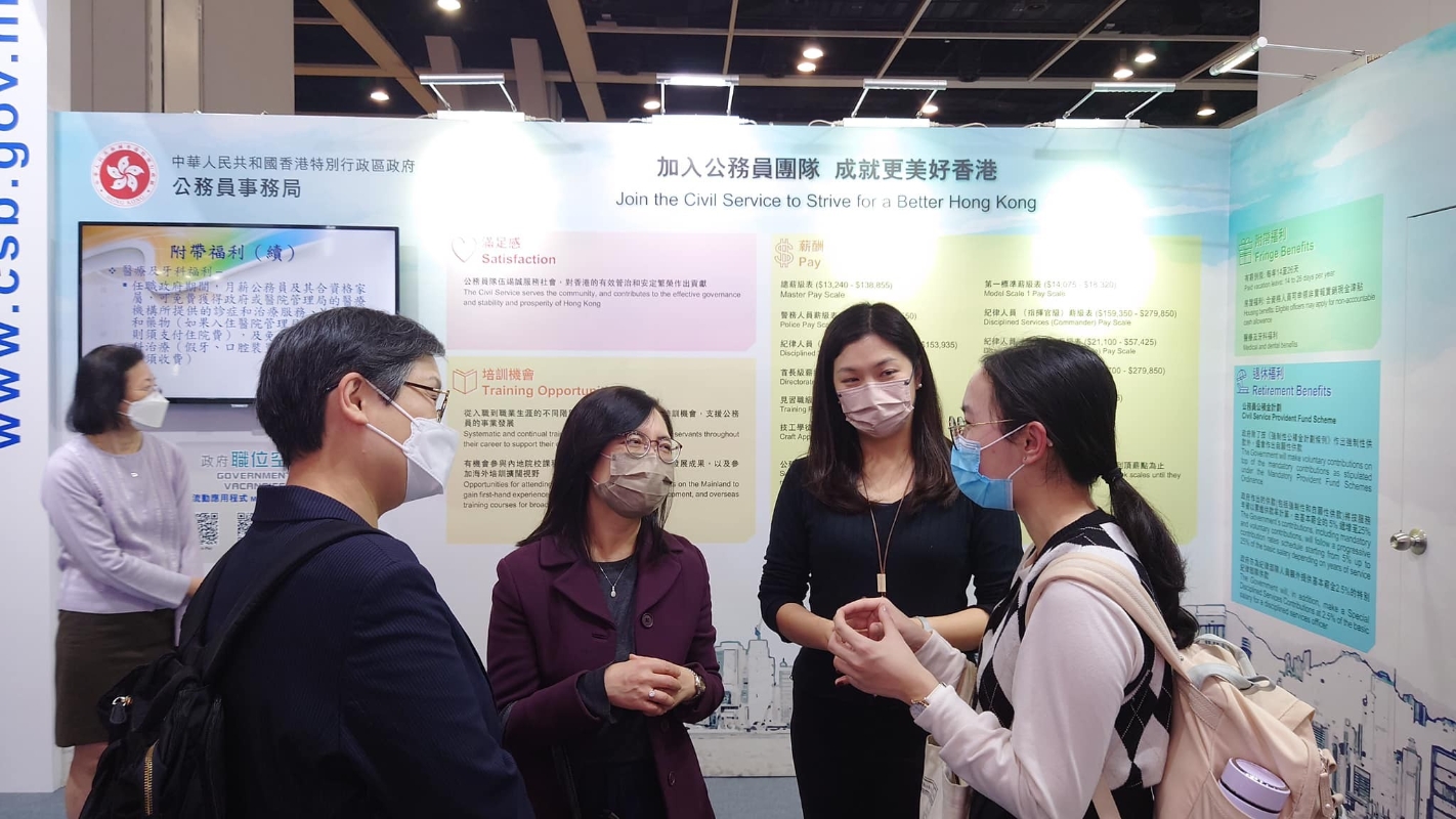 當日講座吸引不少求職人士、青年和快將畢業投身社會的同學出席,在講座完結後她們到公務員事務局的攤位,解答了不少參與者和參觀展覽的人士就有關兩個職系的面試技巧、模式及職系的晉升前景的疑問。有志投考上述職系的人士,請密切留意日後的招聘資訊。(完) 【編輯:李明珠】