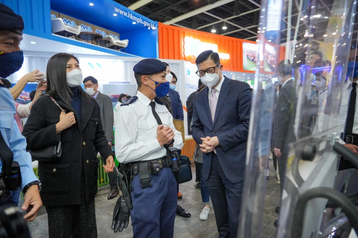 鄧炳強在社交媒體表示,今天的“教育及職業博覽”有紀律部隊參展,身為保安局局長定要到場支持。他看到同事用心設置的攤位,再有新科技的展現,大讚現場攤位十分搶眼。