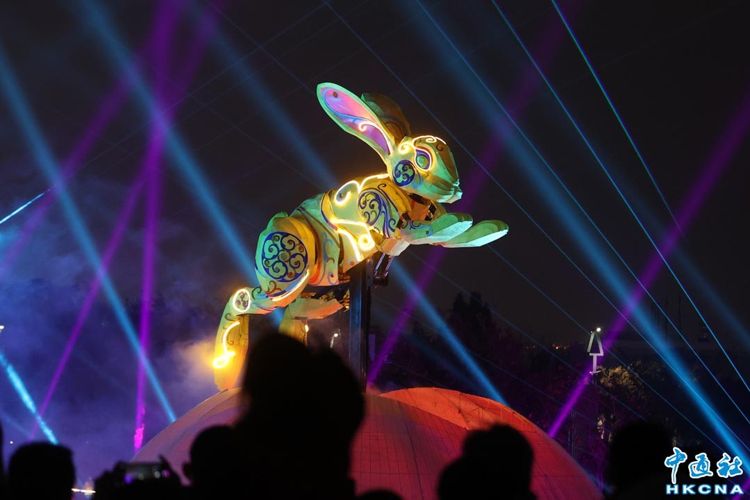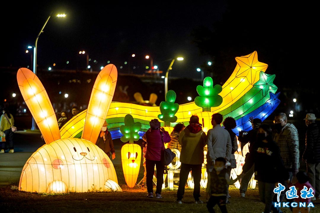 為了迎接元宵節,台灣新北市在新北大都會公園熊猴森樂園舉行“2023新北燈會”,8公尺高的“兔來運轉”主燈,搭乘著飛碟的太空兔眨動雙眼360度旋轉向觀眾打招呼,同時帶領市民前進八大主題燈區及五大展演活動,並邀請國際級表演團隊輪番上陣,與您相約一起賞花燈、看表演。 香港中通社圖片