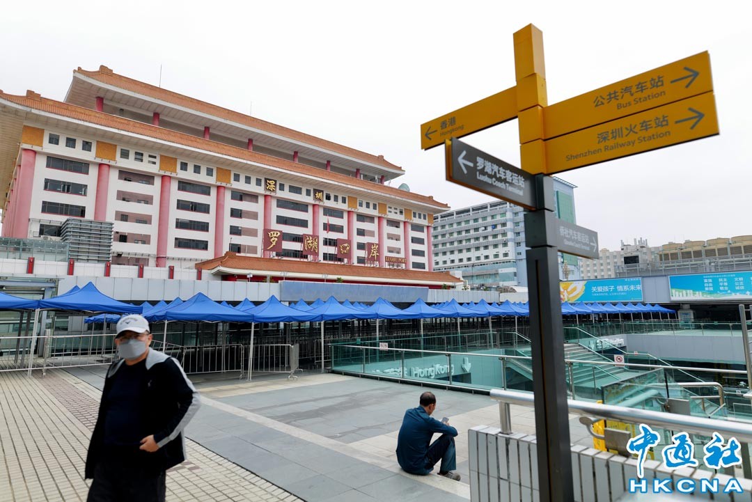 2月5日,記者來到深圳羅湖口岸廣場探訪,出境標識、分流護欄設置完成,迎接2月6日全面恢复內地與香港人員正常往來。(香港中通社記者聞子 攝)
