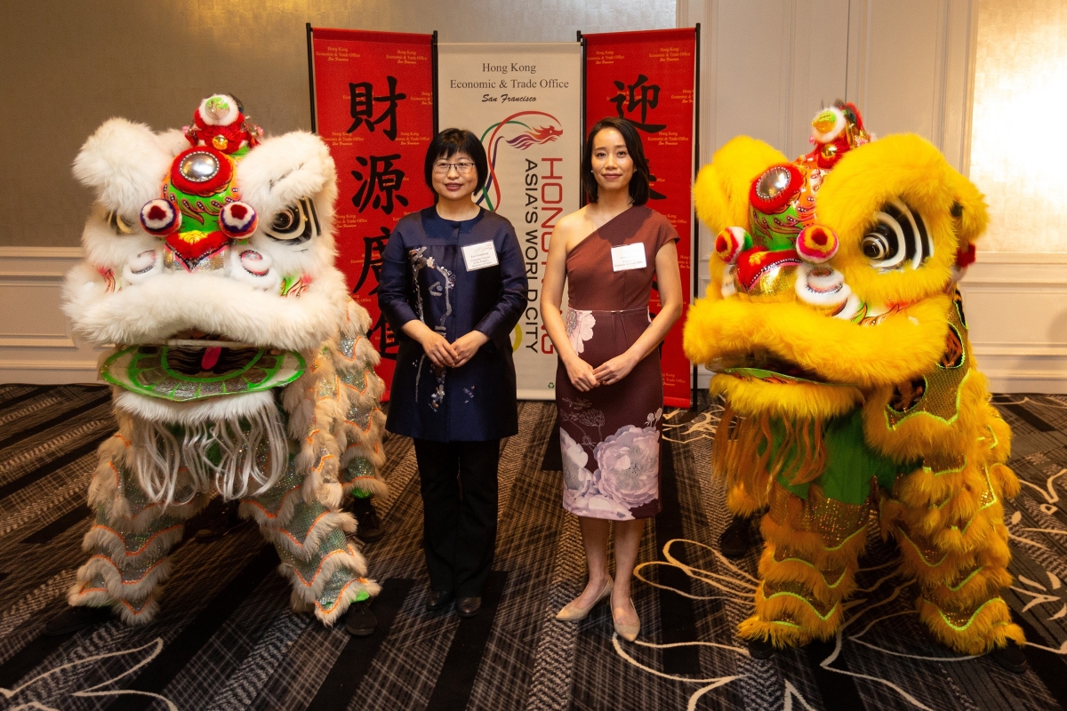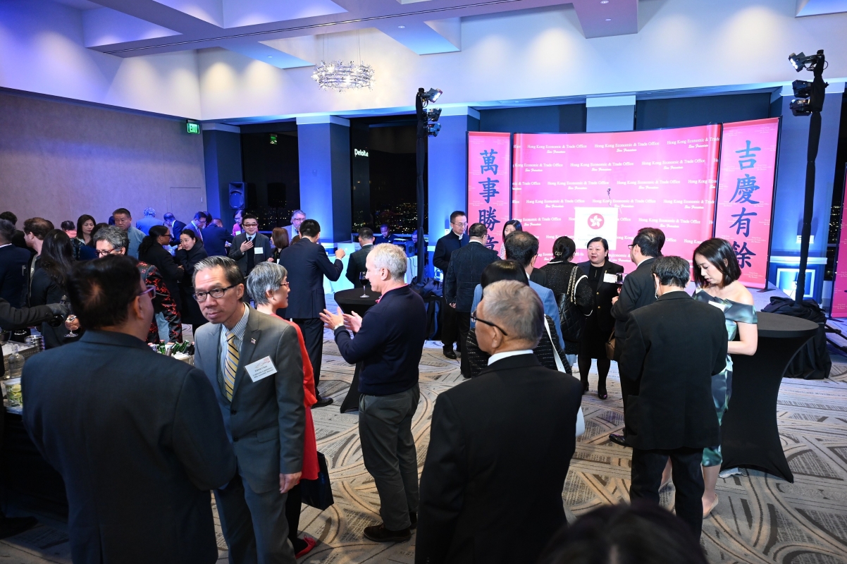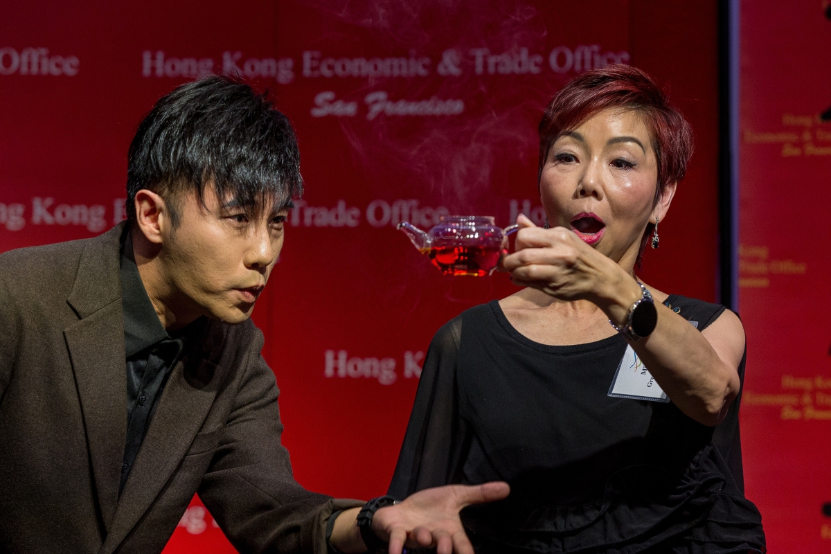 由香港駐三藩市經濟貿易辦事處舉辦的新春酒會獲得加州、華盛頓州及德克薩斯州接近600名嘉賓踴躍出席,包括來自各國領事館、當地政府機構、學術界和商界的代表,以及社群領袖。 來自香港的著名魔術師及健力士世界紀錄保持者甄澤權(左)一月三十一日(西雅圖時間)於西雅圖舉行的新春酒會上表演。 香港駐三藩市經濟貿易辦事處處長曾舜雯(右)與中華人民共和國駐洛杉磯總領事館經濟商務參贊劉怡(左)二月一日(洛杉磯時間)於洛杉磯舉行的新春酒會上進行點睛儀式。
