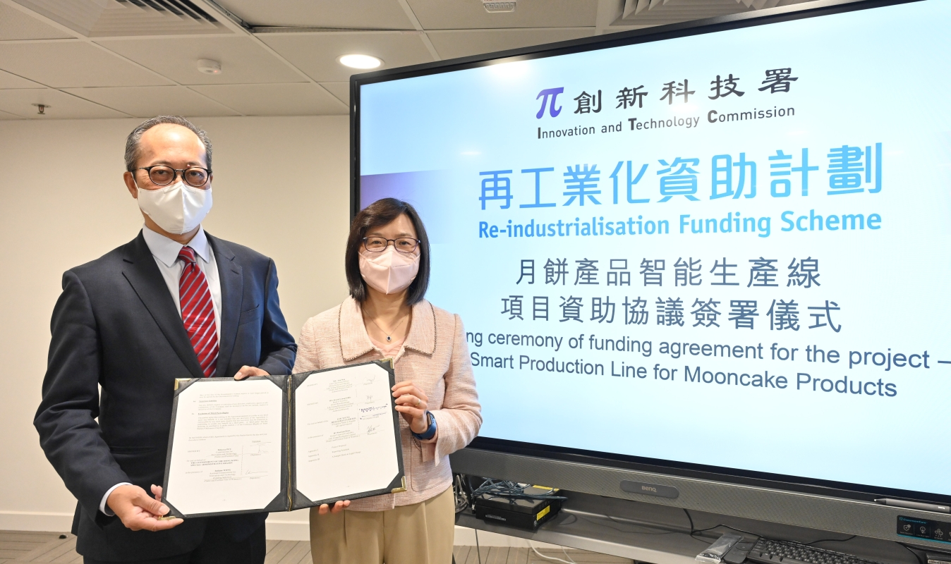 圖示創新科技署署長潘婷婷(左二)、創新科技署助理署長(資助計劃)黃文忠(左一)、綠楊樓有限公司首席營運官(香港及澳門)蕭德威(右二)和綠楊樓有限公司廠房營運總監(食品製造)鄔國樑(右一)出席資助協議簽署儀式。 創新科技署署長潘婷婷表示,香港製造的食品一直在國際上享有良好信譽,在食品安全和食品品質方面保持高水準。創新科技署鼓勵香港食品製造行業憑着優良的競爭優勢,加以“再工業化資助計劃”的資金支持,在香港設立新的智能生產線提升產能,有利行業開拓更多新的市場,讓“香港製造”的品牌發光發亮。 這次獲批項目總支出約4900萬港元,生產商會投入約3400萬港元資金。項目將設於大埔創新園,採用物聯網、自動化機械人技術、先進人機介面、機器視覺和數碼製造系統等先進技術,建立實時數據驅動的月餅產品智能生產線。產品將主要供本地零售,但亦會出口其他市場。 “再工業化資助計劃”以1(政府):2(公司)的配對形式,資助生產商在港設立智能生產線,最高資助額為項目總支出的三分之一或1500萬元(金額以較低者為準)。計劃自2020年7月推出。截至本年1月底,共有31宗申請獲“再工業化資助計劃”評審委員會支持,涉及生物科技、食品製造及加工、紡織及製衣、建造、印刷、醫療器材、納米纖維材料、衞星製造、電子、器材配件、健康產品和中藥等行業,總資助額約為2.7億港元,而企業配對資金超過7.3億港元。(完) 【編輯:崔靜雯】