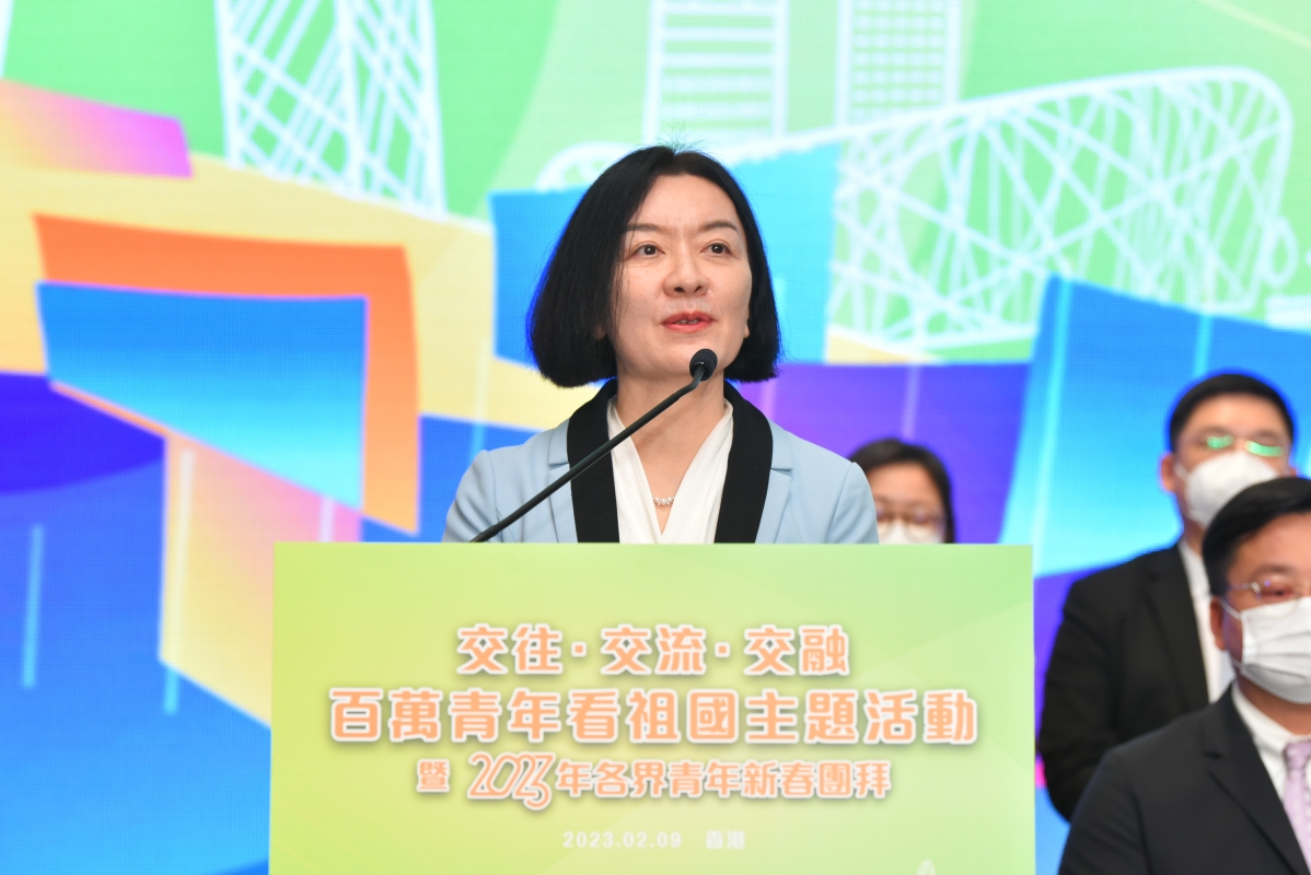 中央人民政府駐香港特別行政區聯絡辦公室副主任盧新寧女士致辭 盧新寧發表題為“以了解促理解,以認知達認同”的致辭,盧新寧表示,“了解”是“理解”的基礎,“認知”是“認同”的開端。香港與內地恢復全面通關,全國青聯第一時間率各省市區青聯來港,與香港各界青年歡聚一堂,共同舉辦“百萬青年看祖國”主題活動,邀請香港青年到內地學習交流,體現了中央和內地有關方面對香港青年人的關心關愛。習近平主席心系香港青年,提出要促進香港青少年與內地青少年的廣泛交往、全面交流、深度交融。這次“百萬青年看祖國”活動,彙集全國各地精心打造的交流路線和活動項目,為香港青年接受國情教育和傳統文化薰陶,提供了豐富的載體。兩個月前特區政府發佈《青年發展藍圖》,“百萬青年看祖國”主題活動啟動可謂正逢其時。期望更多香港青年,讀萬卷書,行萬里路,用心感受國家現代化建設的偉大成就,並祝願活動取得圓滿成功。