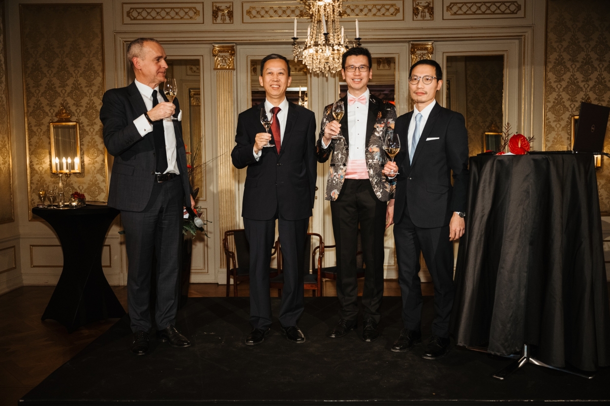 圖示(左起)瑞典香港商會主席Mats Gerlam、中華人民共和國駐瑞典王國特命全權大使崔愛民、倫敦經貿辦處長羅莘桉及香港貿易發展局歐洲、中亞及以色列首席代表朱耀昌於斯德哥爾摩酒會祝酒。 圖示(左起)中華人民共和國駐丹麥王國大使館公使銜參贊秦杰、倫敦經貿辦處長羅莘桉、丹麥─香港貿易協會秘書長Jesper Faber Stuhr、丹麥—香港貿易協會主席Nikolaj Juhl Hansen 及香港貿易發展局歐洲、中亞及以色列首席代表朱耀昌於哥本哈根酒會祝酒。
