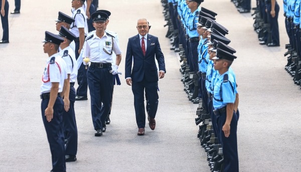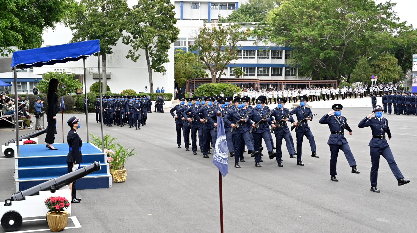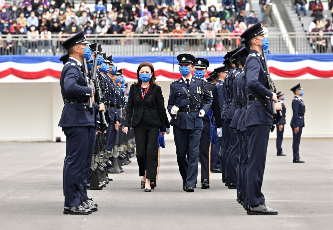 王沛詩在香港警察學院舉行的結業會操檢閱二十六名見習督察及八十九名學警。