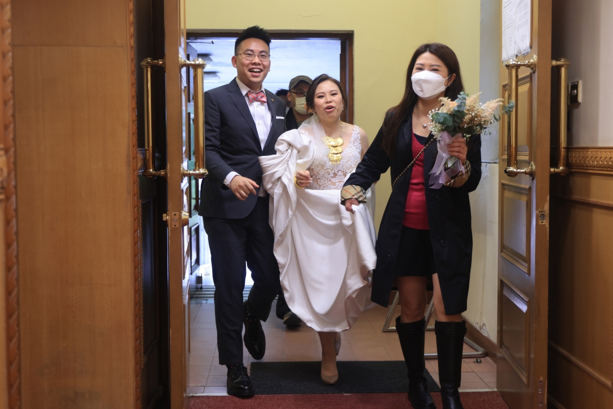 有新人於情人節當天前往紅棉路婚姻登記處登記結婚。