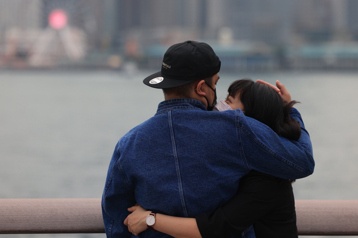 情侶在尖沙咀海濱浪漫過節。 【編輯:許其皓】