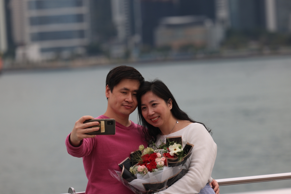 隨著內地和國外來港旅客增多,今年情人節在尖沙咀海濱約會的情侶也較往年增多。