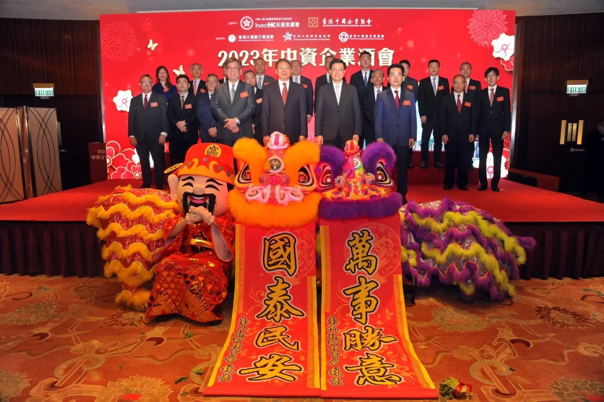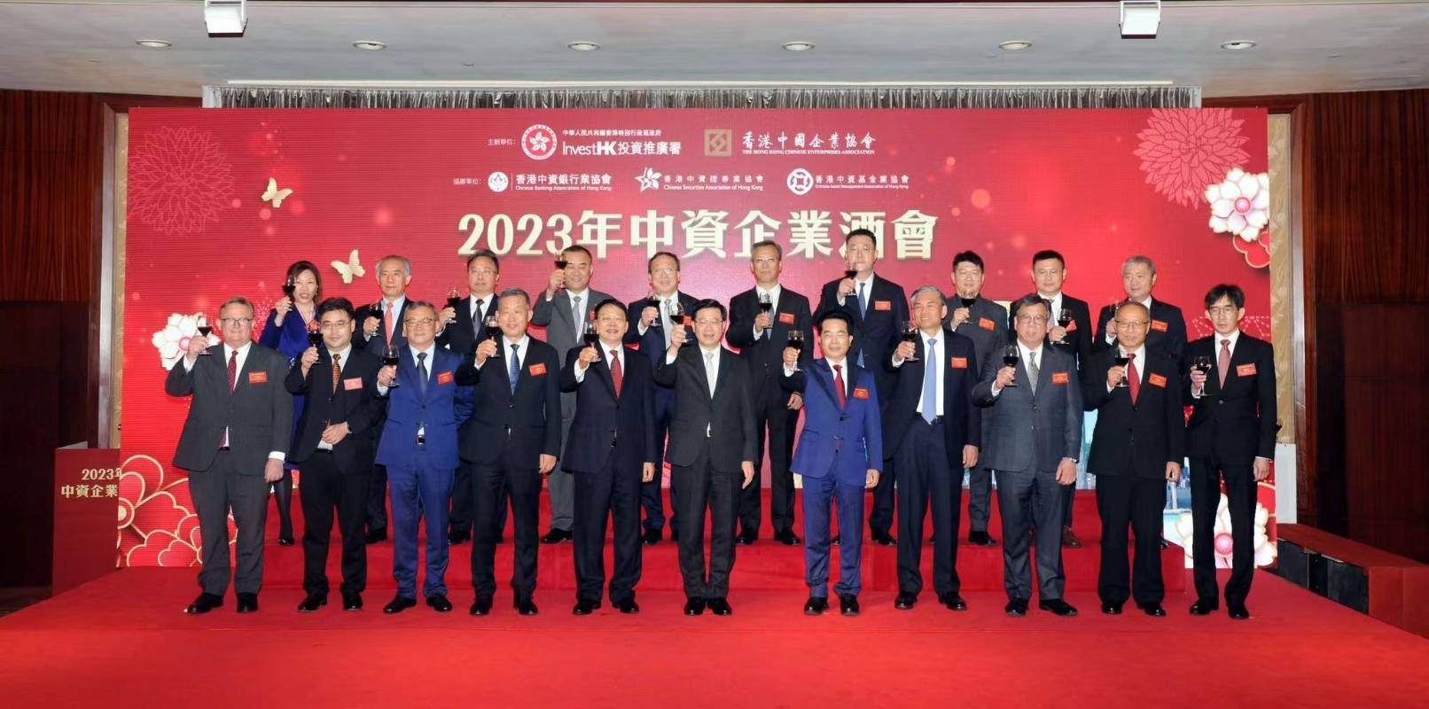 香港新聞網2月15日電 2月14日,由香港特區政府投資推廣署、香港中國企業協會主辦的2023年中資企業酒會在港麗酒店舉辦。香港特區行政長官李家超,中聯辦副主任尹宗華,香港中國企業協會會長繆建民,特區政府商務及經濟發展局局長丘應樺,投資推廣署署長傅仲森,中聯辦經濟部部長徐衛剛,經濟部副部長兼貿易處負責人劉亞軍等出席酒會並擔任主禮嘉賓。中企協會顧問、執行會董、會董,部分立法會議員以及在港中資企業負責人及代表等约700人出席了酒會。本次酒會也得到協辦機構:香港中資銀行業協會、香港中資證券業協會、香港中資基金業協會的支持。