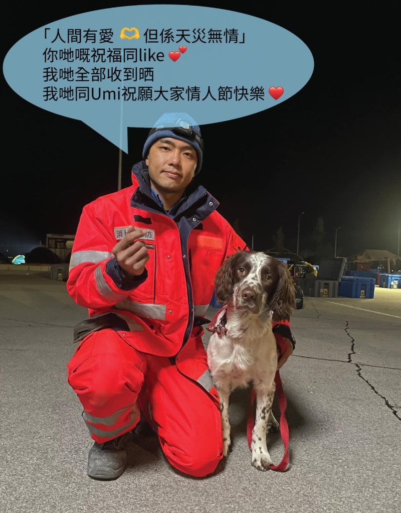 消防處FB圖片。 剛滿2歲的雄性狗狗Umi是在2021年2月12日,與其他5隻史賓格跳犬在港珠澳大橋海關搜查犬繁殖中心出生。六兄弟姊妹為海關與消防處首次合作繁殖的工作犬,牠們名字首字母可拼湊成“FUTURE”,被寄望在未來秉承海關和消防處的使命,正如繁殖合作計劃的名稱“使命傳承,創新里程”。Umi的父親是已服役6年的消防搜救犬Jack,母親則是海關毒品搜查犬Casa,同樣服役已超過6年,現時駐守港珠澳大橋基地協助執行貨物清關工作。 至於雄性狗狗Twix則是在英國出生,曾於去年安達臣道地盤塌天秤事故參與救援工作。兩隻“救人英雄犬”在今次行動中居功至偉。 消防處昨日(14日)亦趁著情人節,特意在其社交平台發文,答謝市民支持,並上傳領犬員與Umi的合照。帖文又稱感到受人間有愛,天災無情,市民的祝福已經全部接收到,特區救援隊會不辭勞苦繼續救援工作。 然而另一方面,墨西哥的搜救隊今次也帶同16隻搜救犬救援,惟其中一隻搜救犬Proteo在執行任務期間,因殘骸倒塌罹難,羅西哥搜救隊在當地為Proteo舉行了一簡單而隆重的告別式,感謝Proteo在英勇搜救,墨西哥的搜救人員連呼三聲Proteo的名字,並吹起最後一次哨音,象徵著Proteo的任務正式結束。(完) 【編輯:孟宜君】