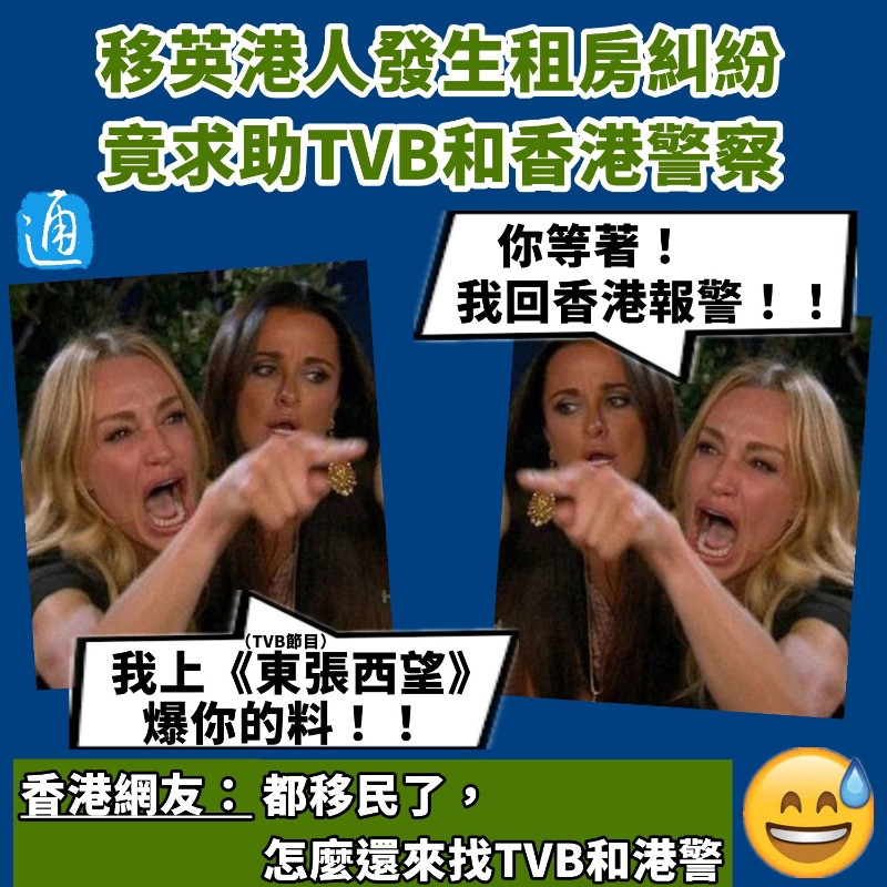 香港新聞網2月16日電 日前,一宗移英港人間的租房糾紛在網絡上引起了廣泛關注。移英的港人租客為討回公道,“不惜”找上一直被“黃絲”網暴、抵制的TVB(香港廣播有限公司),上節目控訴移英港人房東侵吞租金。而這名移英港人房東為反擊對方,竟聲稱租客母子亂倫,還揚言已回港報警。 香港網友們圍觀之餘也感到不解:都移民了,怎麼還找TVB和香港警察?
