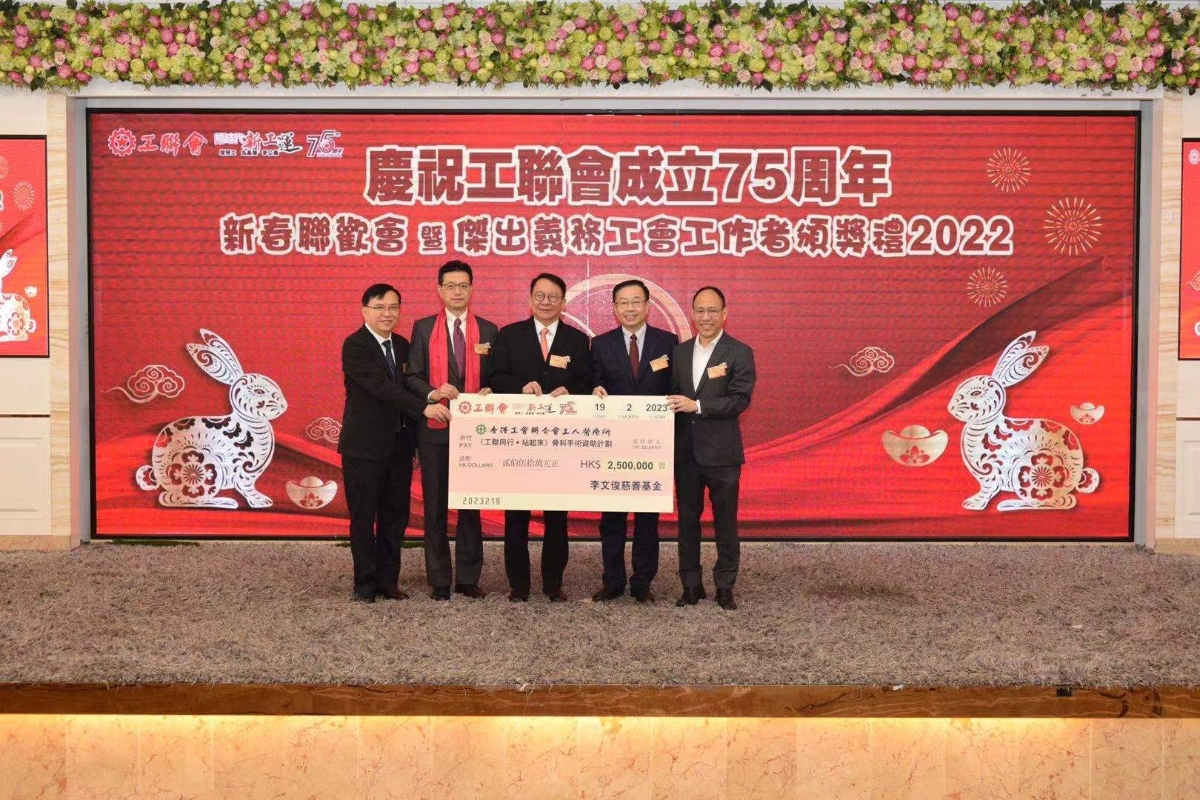 理文造紙有限公司主席李文俊在會上捐贈250萬港元善款支持工聯會工人醫療所“工聯同行·站起來”骨科手術資助計劃,期望能幫助更多基層市民。支票移交儀式由何靖和陳國基見證,工聯會會長吳秋北和理事長黃國代表接收支票。 黃國致辭時表示,工聯會成立至今75周年,走過不平坦道路,無論是順境逆境,始終高舉愛國愛港的旗幟,堅守為打工仔女打拚的初心,全心全意為群眾服務的精神。工聯會每項工作取得的成績,有賴工聯人的共同努力,亦有賴社會合作夥伴包括中資機構、商界人士等的鼎力支持。 政務司司長陳國基感謝工聯會在抗疫3年以來全力支持政府工作,動員大量義工向社區上有需要的市民,提供支援和送上關懷。他說,兩地實施通關第一階段時,工聯會已在口岸地區設立諮詢點,詳盡解答前往內地的港人查詢,發揮工聯會連結兩地服務的優勢。他還讚揚工聯會作為全港最大的勞工團體,秉持務實態度,促進勞資關係,也積極推動香港市民融入粵港澳大灣區發展,不時出謀獻策,政府很期待繼續與工聯會緊密合作,全力發展經濟、改善民生,讓廣大打工仔的生活更加豐盛、更加美滿。(完) 【編輯:張明臻】