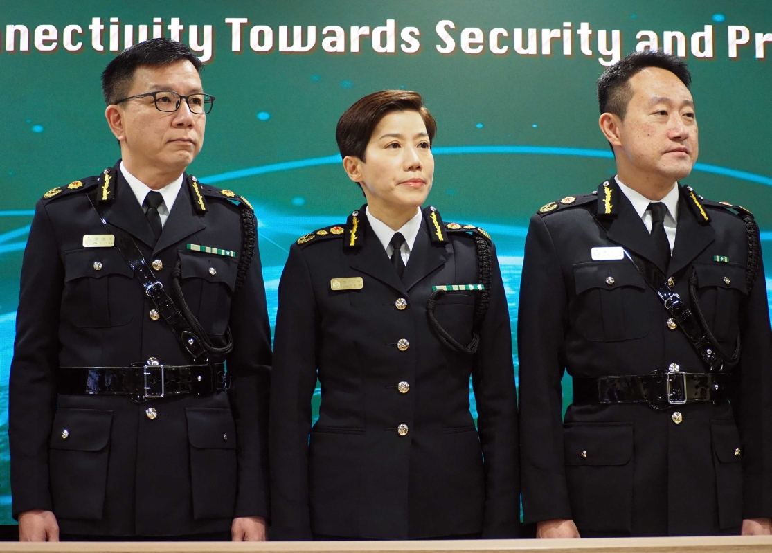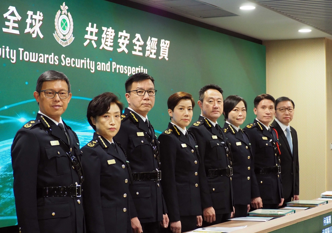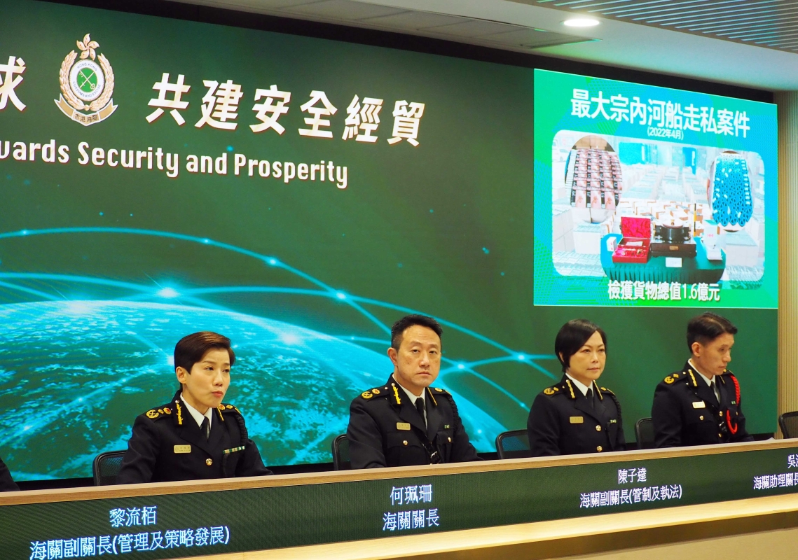 香港海關關長何珮珊(中)舉行記者會 【編輯:洪少葵】