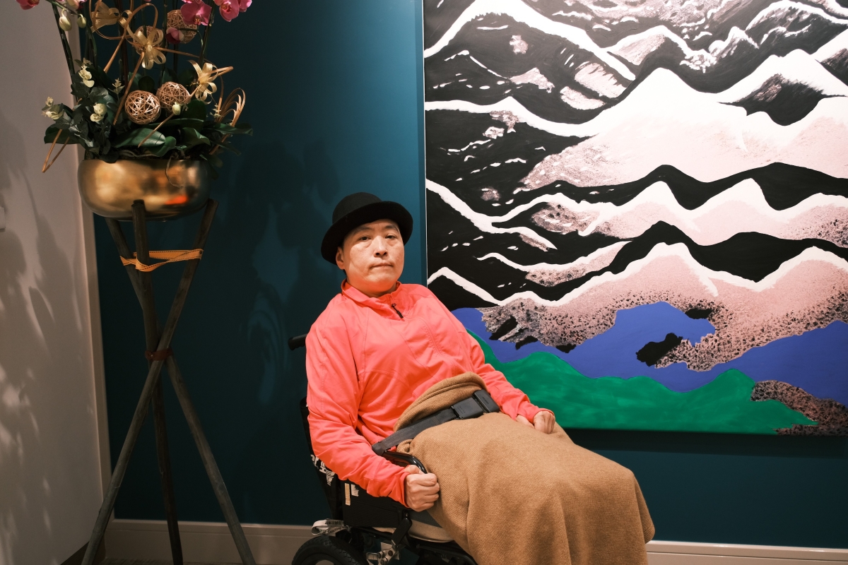 香港中通社3月8日電(記者 李明珠)面對壯闊的山河,身患殘疾依然堅持創作的香港展能藝術家廖東梅,用濃烈的色彩、粗獷流暢的線條,向世人展現別樣山川。站在她的畫作面前,總能感受到飽滿的生命力噴薄而出;這種頑強不息的生命力,也代表著她眼中的香港精神。 自出生起,廖東梅便患上了腦痙攣,雙手因痙攣而無法伸直。但身體沒有桎梏住她堅毅的精神,言語不便,畫作承載著她的所思所想。 時值國際婦女節,華潤旗下中藝舉辦創立以來首個女性群展“灼灼芳華——中藝國際婦女節藝術展”,聚焦廖東梅在內的12位女性藝術家,展出水墨、油畫、陶藝、雕塑等各類藝術作品,讓觀者感受女性藝術家的鏗鏘力量。