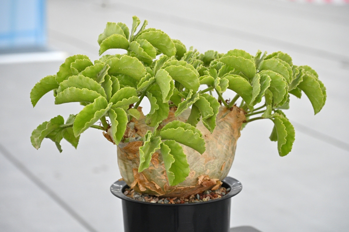圖中形態優美的肉質植物為公開組全場總冠軍展品。 公開組全場總冠軍得主為李德強,其參賽展品是一盆形態優美的肉質植物,而十八鄉鄉事委員會公益社中學的學生則憑三盆悉心培植的吊籃植物,奪得學校組全場總冠軍。