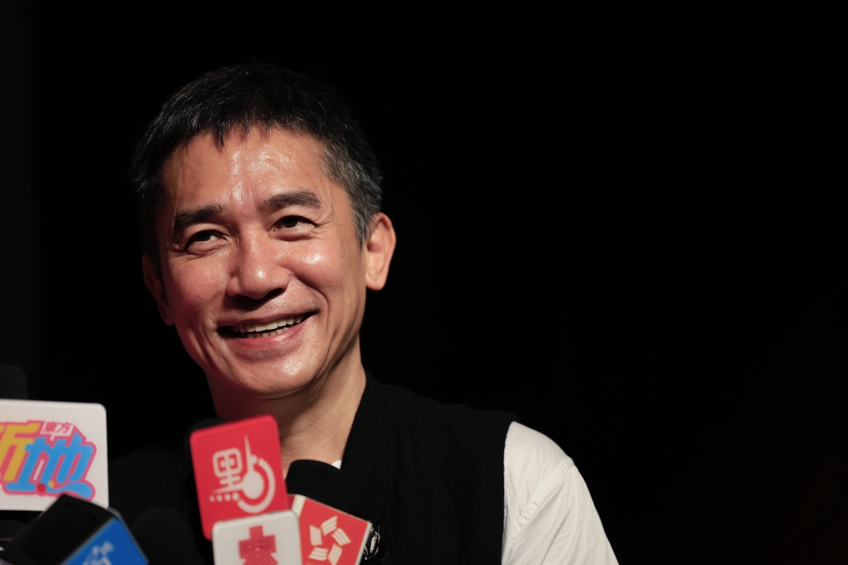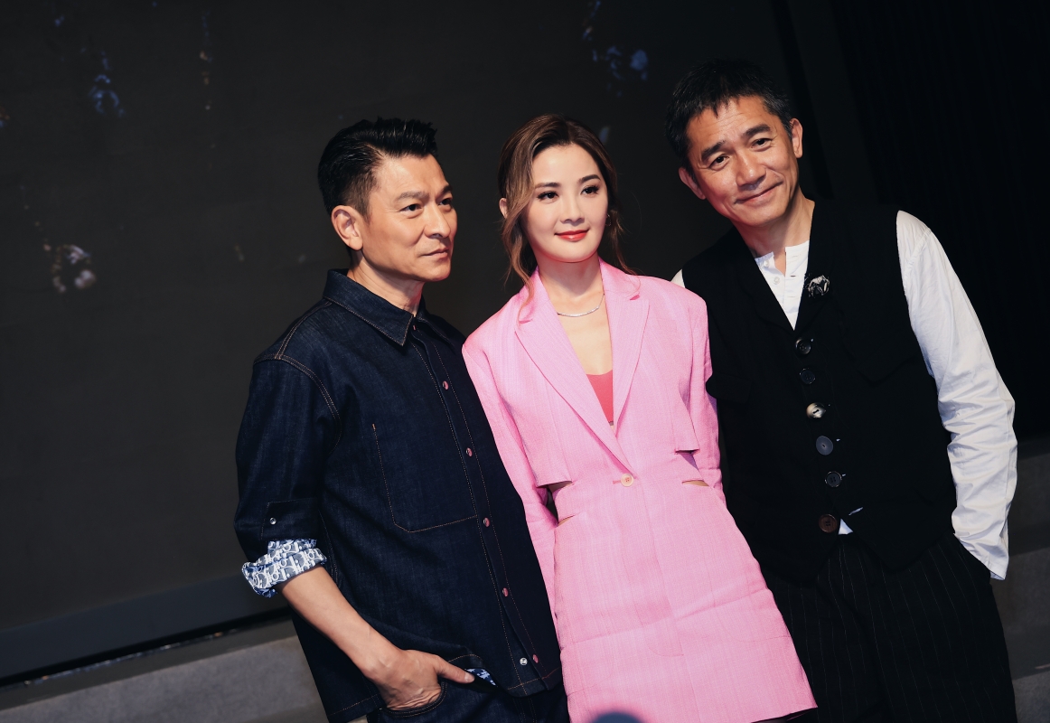 演員劉德華(左起)、蔡卓妍、梁朝偉接受媒體訪問