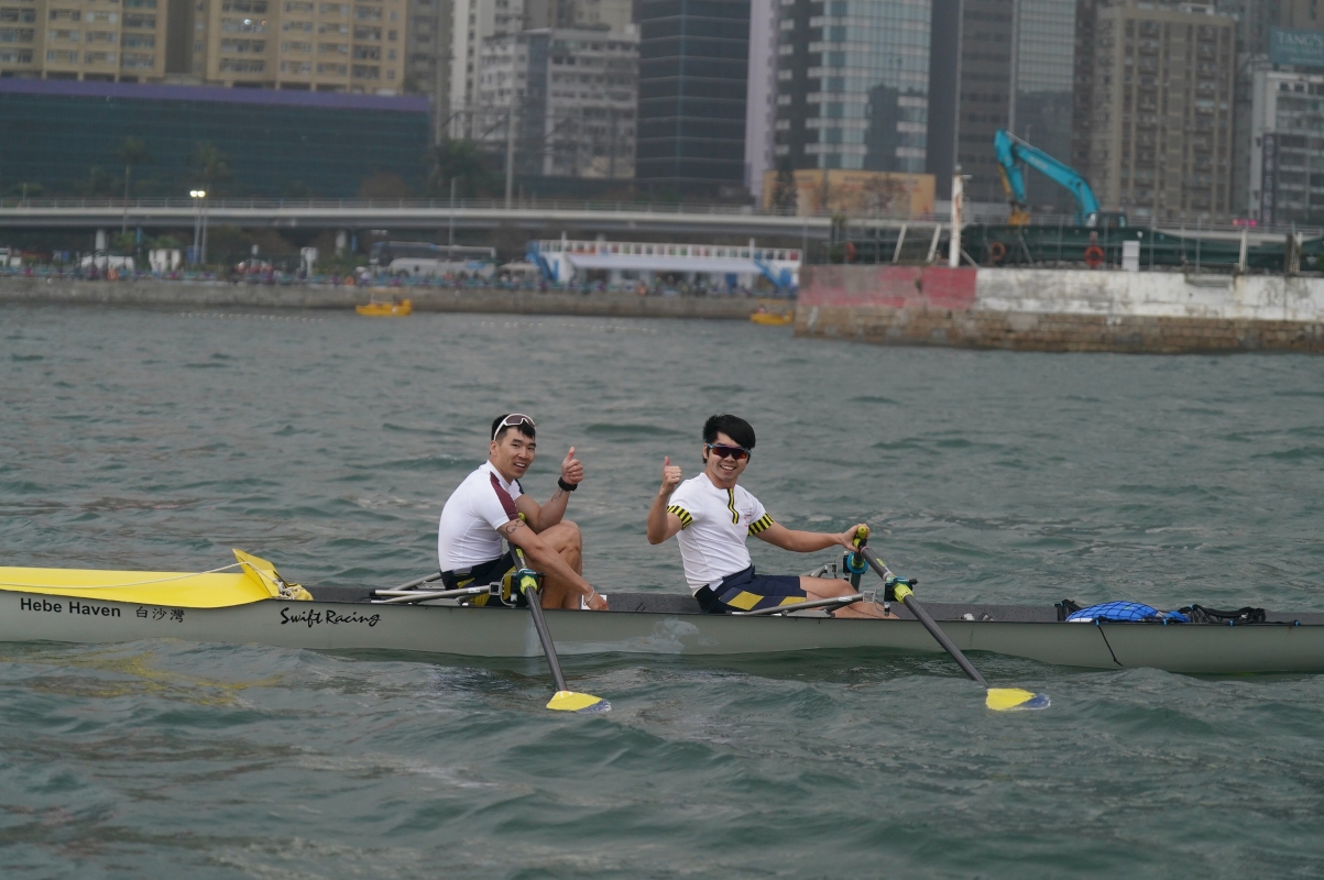 張銘恒(右)以一面維港賽艇賽銀牌為其在港的賽艇生涯畫上圓滿句號。 賽事焦點落在前港隊賽艇運動員張銘恒伙拍鄭陶身上。二人出戰公開組雙人雙槳艇項目,榮獲亞軍。張銘恒與鄭陶識於微時,更曾與其他隊友在2018年雅加達亞運摘銅而回。張銘恒與鄭陶早於2017年時一同協助復辦“維港賽艇賽”,從此以後每年均以“搞手”(組織者)身份舉辦賽事。卸下港隊身份後,張銘恒與鄭陶將於下月離港,二人決心把握最後機會再次一同參賽,最終奪得亞軍,為張銘恒在港的賽艇生涯畫上圓滿句號。