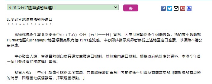 香港新聞網3月21日電 香港特區政府食物環境衞生署21日宣佈,因應世界動物衞生組織通報,指丹麥Gribskov Municipality暴發高致病性H5N1禽流感,食物安全中心即時指示業界暫停從該地區進口禽肉及禽類產品,包括禽蛋,以保障公眾健康。 根據政府統計處的資料,香港去年從丹麥進口約一千五百六十公噸冷藏禽肉。 政府發言人說,中心已就事件聯絡丹麥當局,並會繼續密切留意世界動物衞生組織及有關當局發出關於爆發禽流感的消息,因應當地疫情發展,採取適當行動。 (完) 【編輯:徐嘉儀】