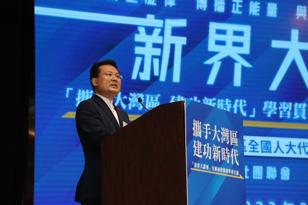 (圖源:新社聯) 港區全國人大代表、聯會理事長陳勇在致歡迎辭表示,剛剛勝利閉幕的全國“兩會”是全面貫徹落實二十大精神的一次重大會議,也是事關香港全面融入國家發展大局、保持長期繁榮穩定的關鍵會議,是中國未來五年發展的路線圖和指南針。希望參會嘉賓響應習近平主席提出“強國建設、民族復興的接力棒,歷史地落在這一代人身上”的號召,接上再創香港輝煌的“接力棒”,進一步感受中央對香港的關懷、把握香港面臨的發展機遇、增強對香港由治及興的信心、弘揚建設香港、服務香港的擔當盡責精神。 李薊貽在為活動致辭時指出,本次全國“兩會”,是二十大後召開的首次“兩會”,亦是在“十四五”規劃承上啟下關鍵之年召開的一次盛會,舉國關注、舉世矚目。學習宣傳貫徹“兩會”精神,首先要從全面准確貫徹“一國兩制”出發,把握“兩會”的特出特點、重大意義、重大成果和重要精神,其次要站在高質量推動香港融入國家發展大局的高度,找准貫徹落實“兩會”精神的立足點。