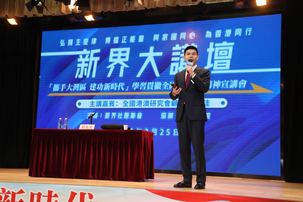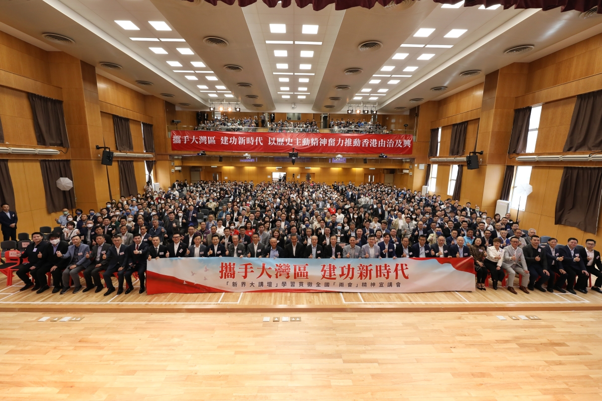 香港新社聯辦千人宣講會 學習宣傳貫徹全國兩會精神香港新聞網3月28日電 香港新界社團聯會3月25日上午,以“攜手大灣區 建功新時代”為主題,在沙田培僑書院舉辦了“新界大講壇”學習貫徹全國“兩會”精神宣講會,與會嘉賓包括全國政協副主席梁振英、中聯辦新界工作部部長李薊貽、全國港澳研究會顧問劉兆佳,以及部分港區全國人大代表、政協委員、香港立法會議員、新界地區滅罪委員會、防火委員會、地區委員會的委員,現場共約1000人,聯會常務副理事長譚鎮國擔任主持。