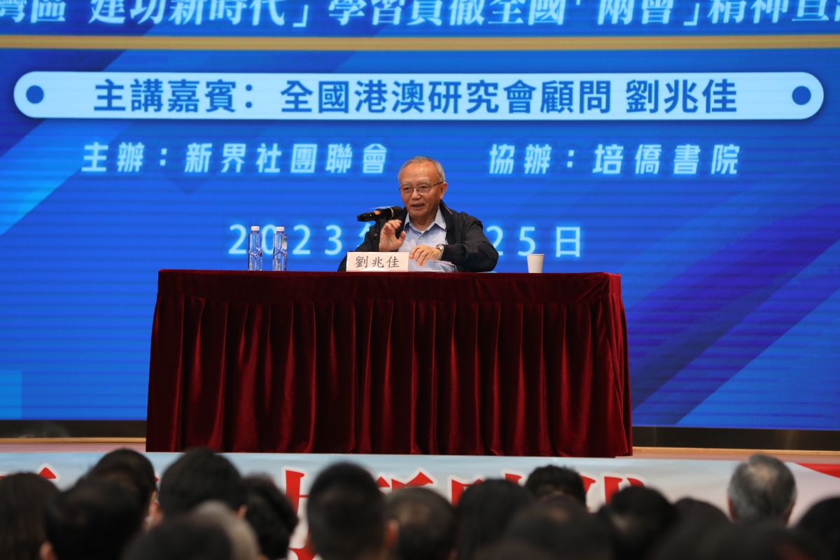 (圖源:新社聯) 梁振英強調,香港社會要領悟“兩會”精神,其中關鍵一點,在於各界需知道香港未來的發展,不在於香港自身想做什麼,而在於國家需要香港做什麼,因此須避免成為國家發展的消極因素。國家在習近平總書記的領導下,正積極推動構建人類命運共同體的終極目標,而香港固有國際金融中心、東西聯絡人之角色,可為國家作出貢獻,“十四五”規劃又賦予香港更多新的重要定位,相信在講好中國故事、強國建設、和平統一、民族復興的新征程中具備獨特作用。他認為,香港各界定要在高質量發展的“最後一公裡”以實際行動積極作為,保障“一國兩制”事業繁榮穩定,推動兩岸和平統一,同心共創復興偉業。 劉兆佳在會上作“中國式現代化及其重要意義”主題演講時指出,中國式現代化是人口規模巨大的現代化、是全體人民共同富裕的現代化、是物質文明和精神文明相協調的現代化、是人與自然和諧共生的現代化、是走和平發展道路的現代化。中國用幾十年時間,走過了西方世界幾百年的發展道路,今時今日所取得的成就在某些方面甚至已經超過了西方世界。可以說,西方國家在發展中出現諸多問題,中國式現代化為全人類提供新的可行方案,為人類和平發展作出了新的更大貢獻。而“一國兩制”是中國全面推進現代化中的重要一環,香港在祖國現代化道路中大有可為,須堅持落實“兩會”精神,促進香港融入國家發展大局。