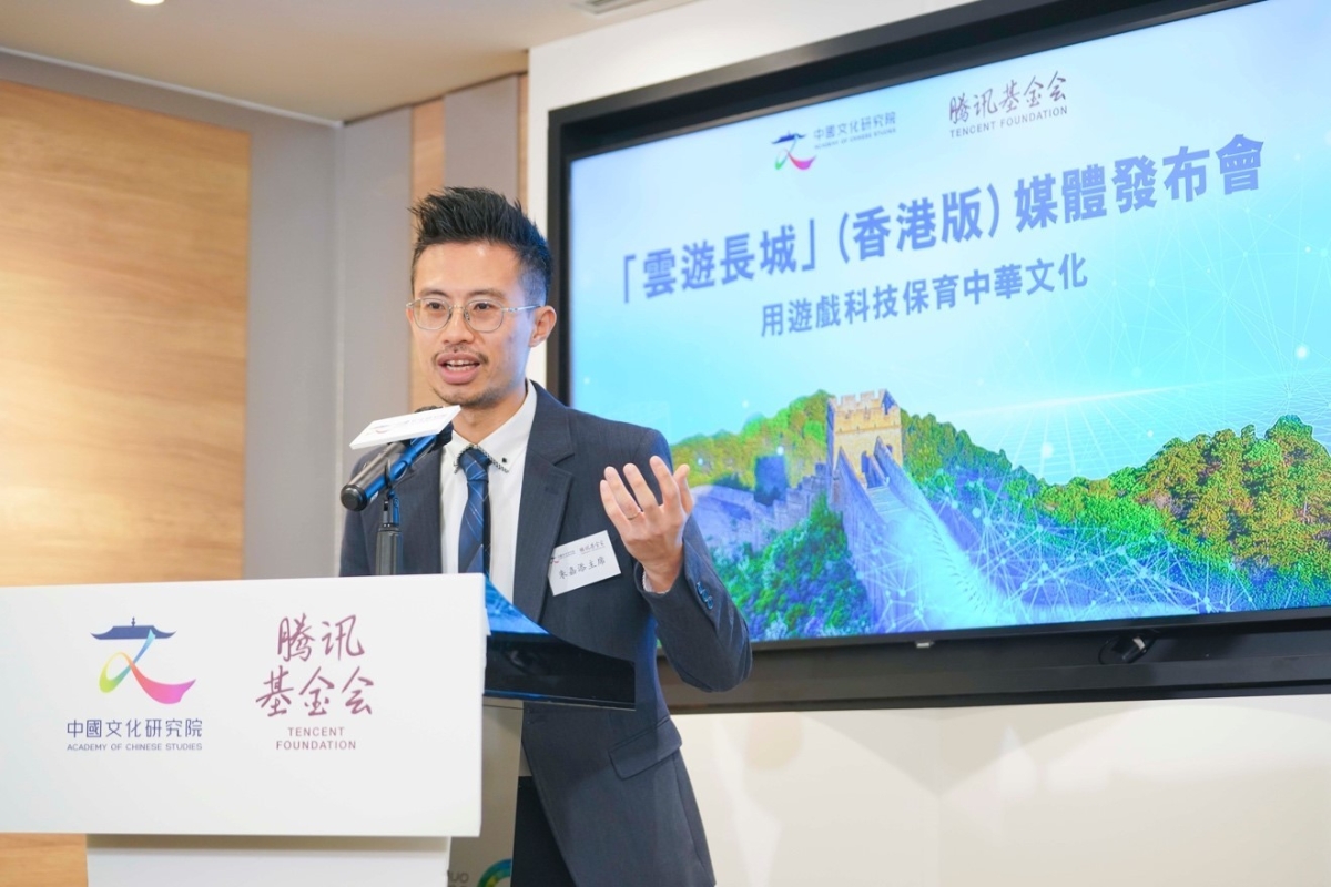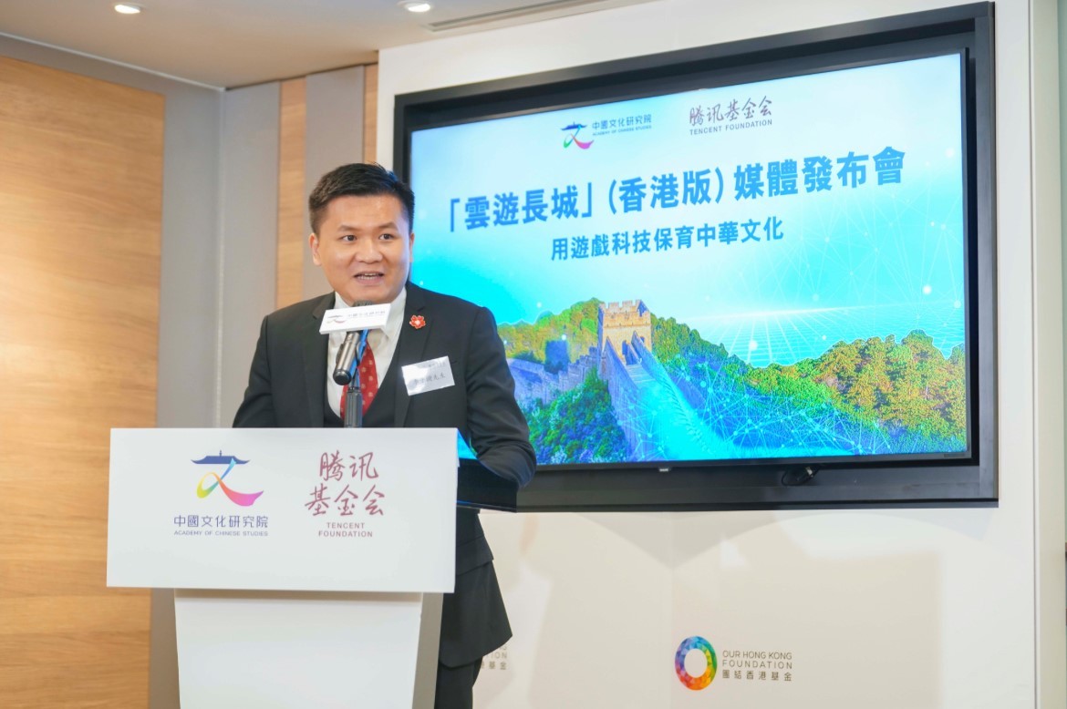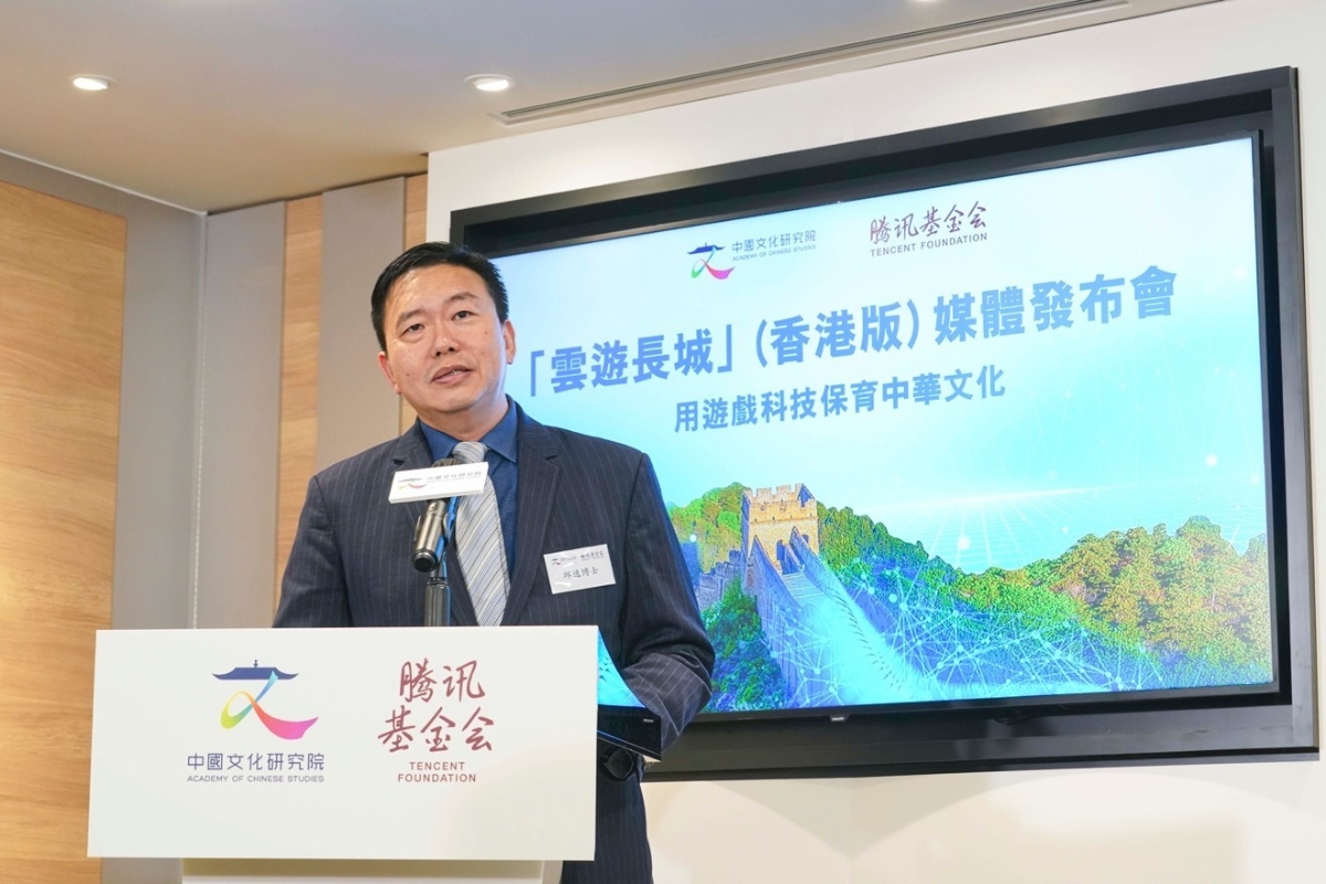 圖:中國文化研究院院長邱逸博士 “透過與中國文化研究院的合作,我們希望把寓文物保育教育與學習趣味於一身的‘雲游長城’引進香港,讓香港的廣大學生能够沉浸互動式體驗修繕長城的工作,瞭解長城的保護知識,推動他們傳承和參與中華優秀傳統文化及歷史保育。“騰訊集團公共事務副總裁、騰訊基金會行政總監李子樹說。