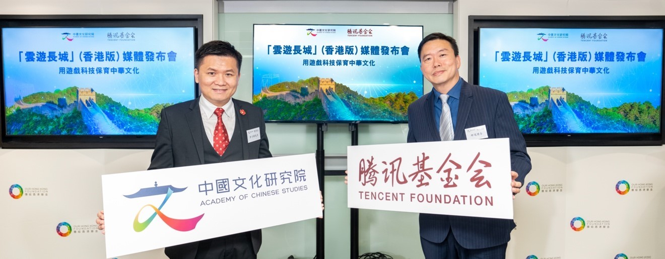 圖:騰訊集團公共事務副總裁、騰訊基金會行政總監李子樹與中國文化研究院院長邱逸博士 目前在中國文化研究院的平台上,配合“雲游長城”(香港版), “長城VR”、“閱讀長城”及“圖說長城”等多維度延展學習資源都已上線,將帶領學生全面展開“感受”長城、“走近”長城及“觸摸”長城的沉浸式體驗之旅,增加學生對歷史的尊重、瞭解和豐富他們的文化知識。