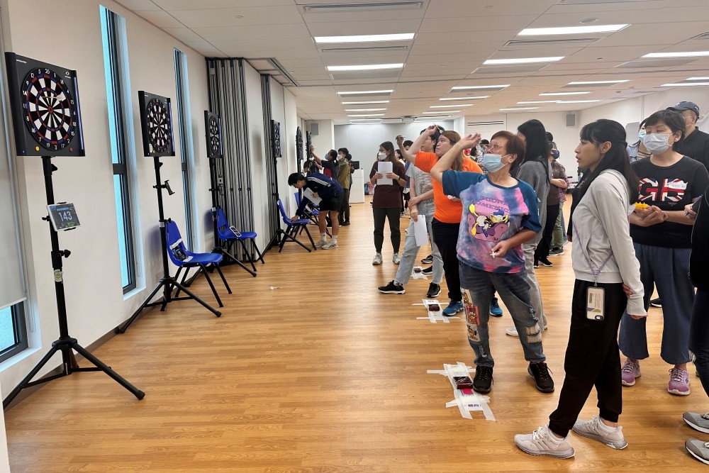 香港都會大學提供。 比賽期間,都大學生成為視障運動員的“同行者”,以口述影像提示他們投擲飛鏢的方向。飛鏢大賽為一眾視障運動員留下美好回憶,與都大同學於比賽中緊密合作讓他們彼此建立珍貴的友誼。這次活動亦讓都大學生從嶄新的角度學習,體會s視障人士的需要和在日常生活中面對的困難,並為他們提供支持和鼓勵,實踐為善最樂的精神。 人文社會科學院四年級學生梁可宜表示,為這次比賽擔任義工非常有意義,令她有很大得著,除了對視障運動員和視障人士有更深的了解外,她亦透過互動與他們建立友誼。她說,可能大家會以為有健全視力,看到紅心的位置就容易射中。不過,在落場嘗試之後,發現自己未必如視障運動員厲害。他們需要的是我們給予多些鼓勵和信心。