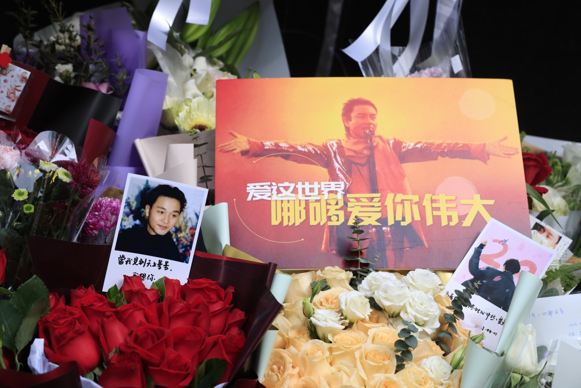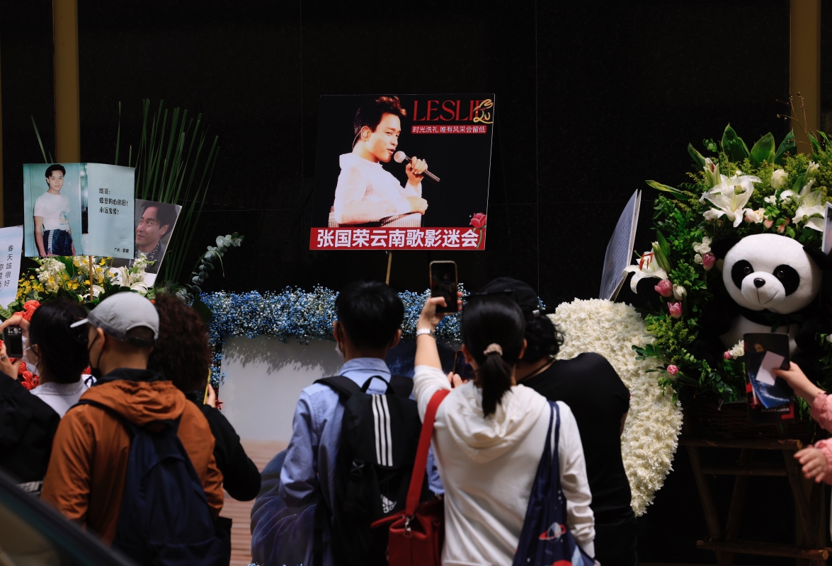 張國榮逝世20周年 香港文華東方酒店外擺滿花牌分享到: