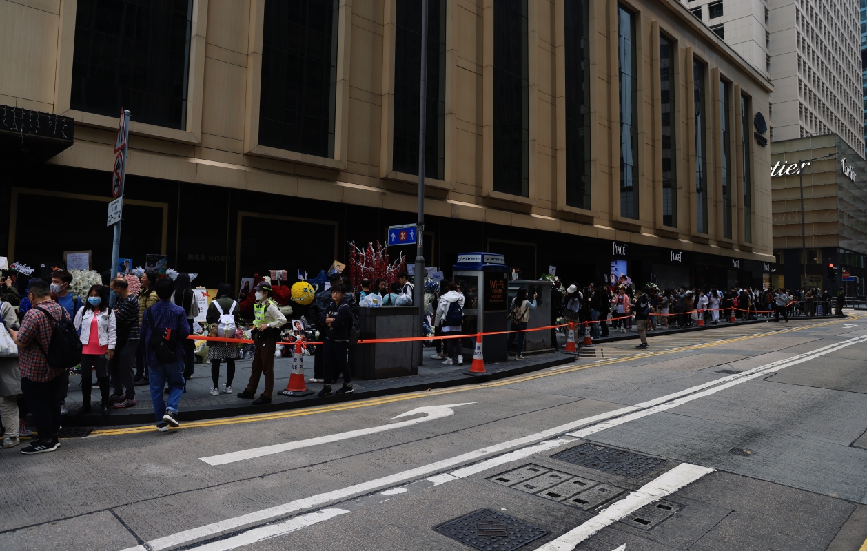 香港新聞網4月1日電(記者 曹文毓) 4月1日,張國榮逝世20周年,香港文華東方酒店外擺滿花牌,獻花的歌影迷排起長隊。隨著香港走向復常,今年更多海內外的歌迷來到文華東方酒店外獻花。負責酒店外維持秩序的職員告訴香港中通社記者,今年的粉絲來得比以往多。 張國榮的藝術成就,穿越時空、地域與界限,對本地流行文化影響深遠。 20年了,歌迷、影迷仍然繼續寵愛他。