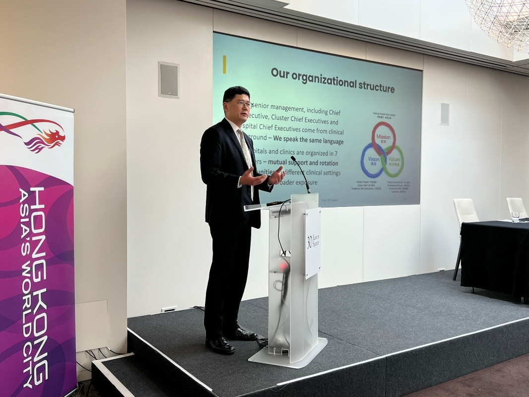 高拔陞在倫敦的“香港日”活動上,向醫學生介紹香港的公營醫療服務,鼓勵他們回港工作。 代表團亦會與一批執業醫生見面,介紹香港公立醫院的工作環境、工作前景及其他生活上的安排等,吸引他們返回香港工作。 醫務衞生局局長盧寵茂欣悉代表團順利展開行程。他強調,施政報告中提及,我們要更積極和進取地“搶人才”。醫務衞生局在吸引、挽留及發展醫療人才方面一直不遺餘力,此次派出代表團“主動出擊”,希望吸引不同志向的醫學生及執業醫生來港,在醫管局、衞生署或兩間本地大學醫學院服務,發揮所長。 醫管局行政總裁高拔陞說,我們很高興有機會在倫敦,親身及在線上與200多名來自香港的醫學生及執業醫生見面。他們的反應十分正面,對回港工作非常有興趣。這次我們展示了最大的誠意,希望他們認真考慮,回港服務病人。 高拔陞說,醫管局會有專人與是次活動的參加者保持聯繫,並會盡快核實有意回港工作者的資格及完成相關的審批和聘用程序,並協助他們辦理回港工作的相關手續,以及提供其他所需支援,務求讓他們無後顧之憂,可以盡快投入醫管局的工作。 香港駐倫敦經濟貿易辦事處(倫敦經貿辦)協助籌辦活動。倫敦經貿辦處長羅莘桉在活動中透過視訊致辭時說,“搶人才”是特區政府的首要任務,政府會盡最大努力提供便利及創造有利環境吸引人才落戶香港。我們為非本地培訓醫生開拓的最新註冊及執業途徑,可算是近年為醫學界吸引人才的一大突破。
