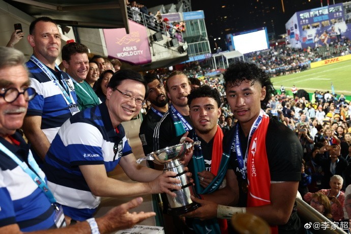 (圖源:李家超微博) 楊潤雄亦形容現場像嘉年華一般。強調七人欖球賽標誌香港已全面復常,未來數月將有更多精彩的大型國際體育盛事在香港舉行,料會吸引更多旅客來港。 楊潤雄又讚揚港隊表現出色,在全場觀眾打氣之下,男子隊力挫肯尼亞及加拿大,勇奪銀盾;女子隊首次出戰世界系列賽賽事,亦取得隊史首個該賽事的達陣。 【編輯:刘春】